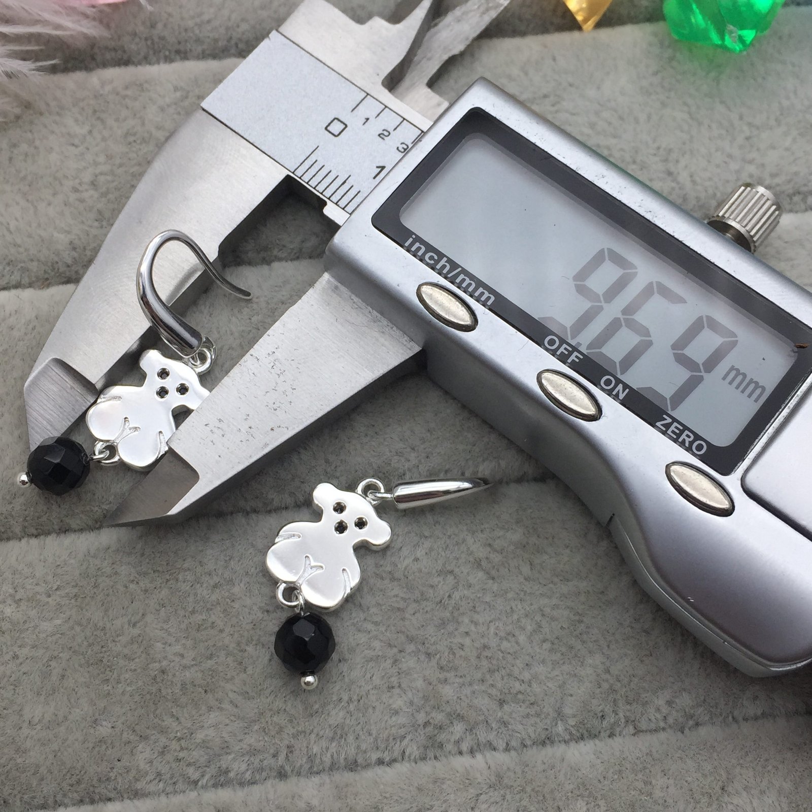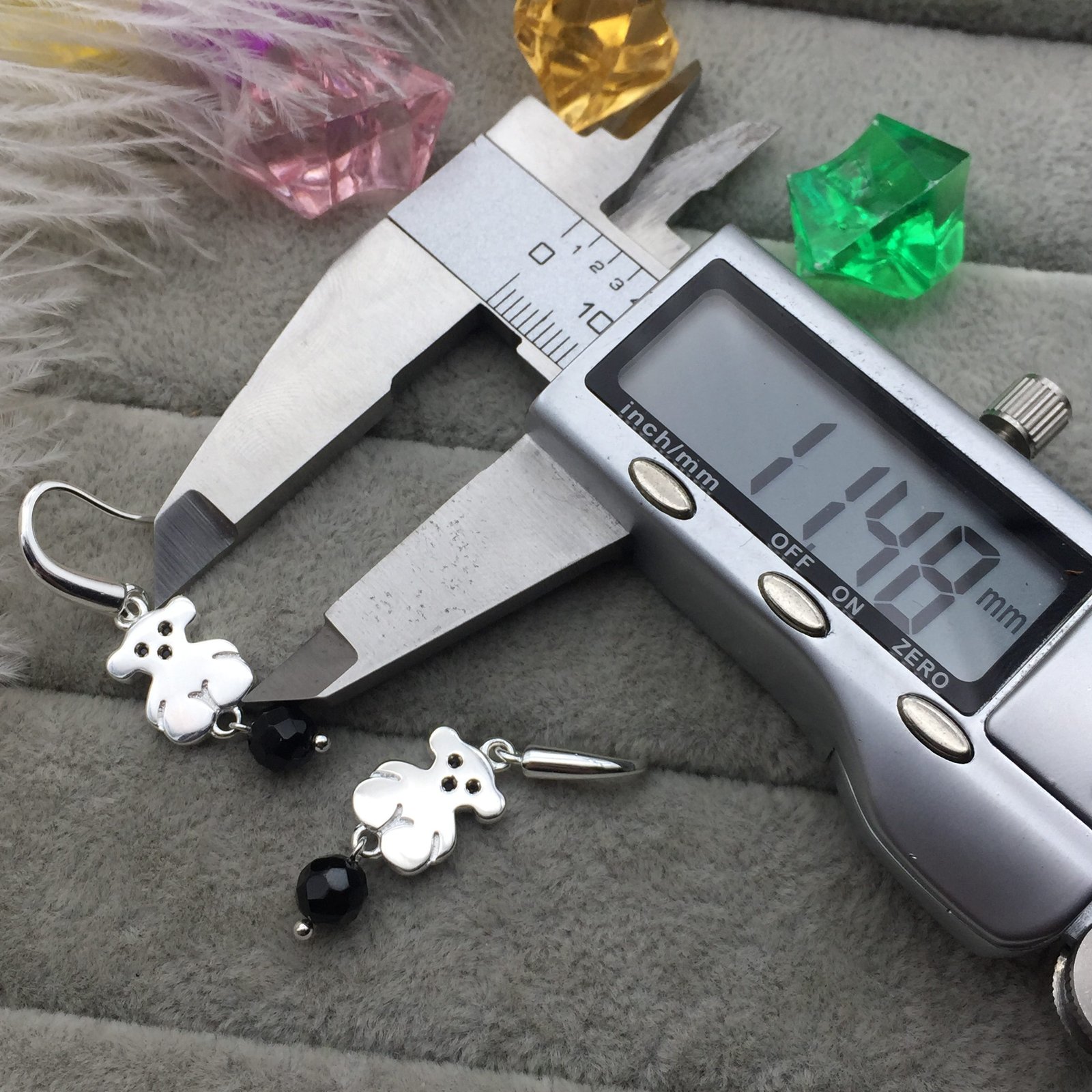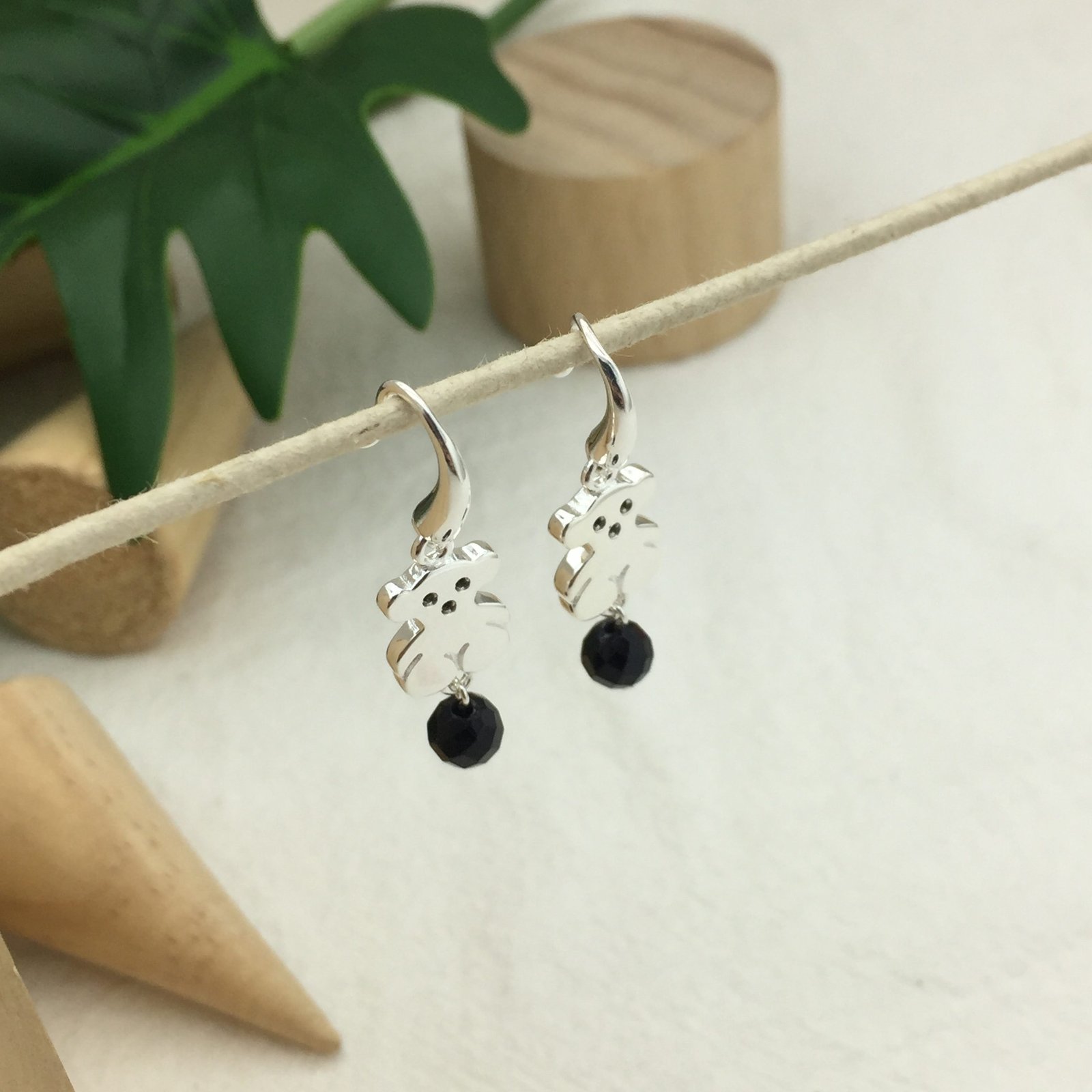 TOUS Sweet Dolls sterling silver earrings with Spinels and Onyx. Inset: 1.15 cm. Loop fastener.