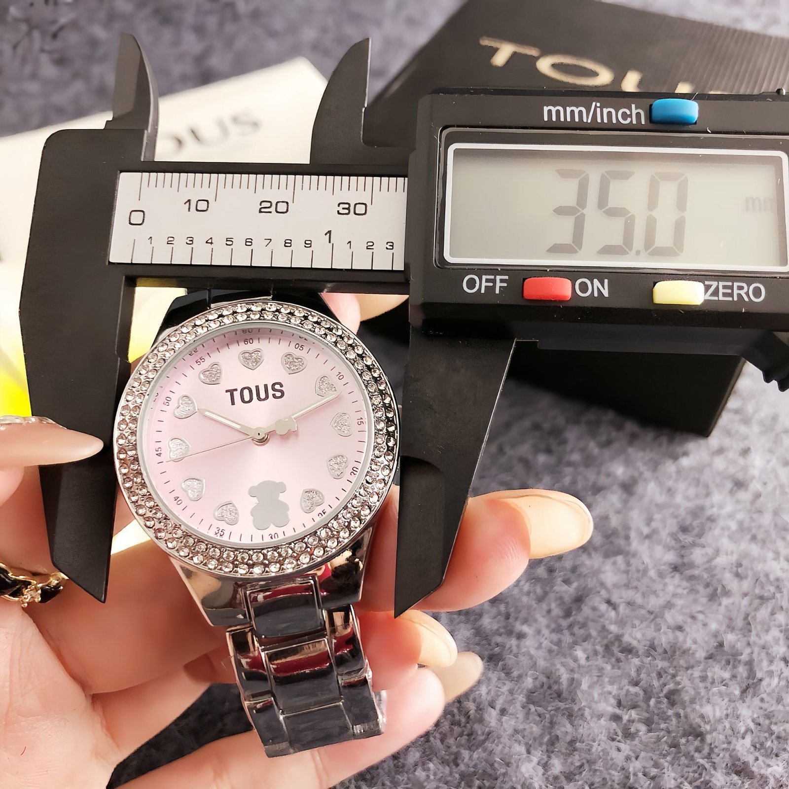 Tous T513 series watches embody whimsical charm and luxury, featuring round dials with the brand’s iconic bear motif, intricately designed metal bracelets adorned with sparkling crystals, and refined tones like rose gold, gold, silver, and two-tone. With Tous’ signature attention to detail and heritage of jewelry craftsmanship, these timepieces exude youthful sophistication. Perfect for those who appreciate a blend of playful style and elegant craftsmanship, they make a delightful statement suitable for both casual outings and special occasions.