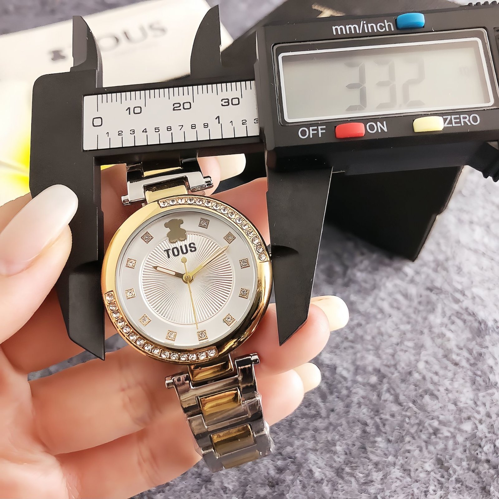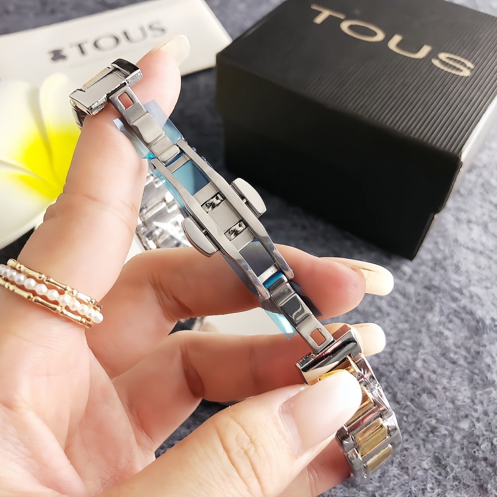 Tous T67XX series watches blend playful elegance with diverse design details. Featuring round dials, the signature Tous bear emblem, and optional crystal accents, they come in chic tones like two-tone, silver, gold, and rose gold, with various dial color options. Embodying Tous’ legacy of combining cuteness and sophistication, these timepieces offer a range of styles to suit any taste, adding a touch of whimsical luxury to daily outfits or special occasions, making them perfect for fashion lovers seeking distinctive and stylish accessories.