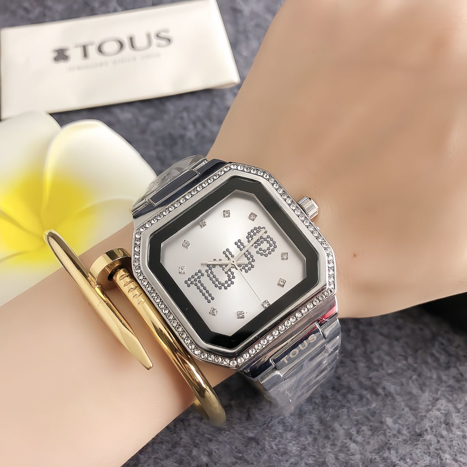 Tous TS 8478ZM series watches blend vintage charm with whimsical style. Featuring square dials, bold “TOUS” branding, and sparkling crystal details, they come in chic tones like two-tone, gold, rose gold, and silver, with playful dial color options. Embodying Tous’ signature fusion of cuteness and sophistication, these timepieces add a touch of unique luxury to any look, perfect for those who appreciate distinctive, fashion-forward accessories that stand out in daily wear or special occasions.