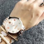 Multiple colors and styles of metal steel strips are available for selection, such as silver, gold, etc., paired with different dials to showcase different styles.