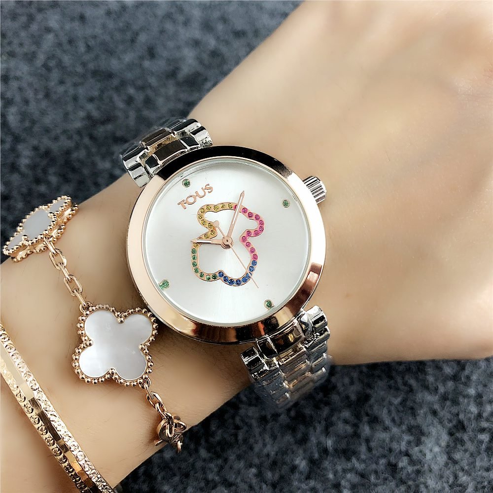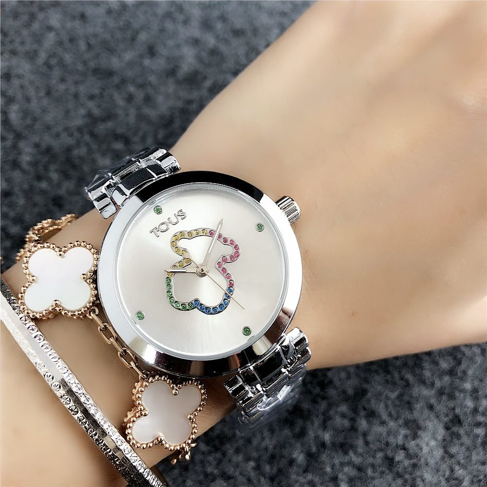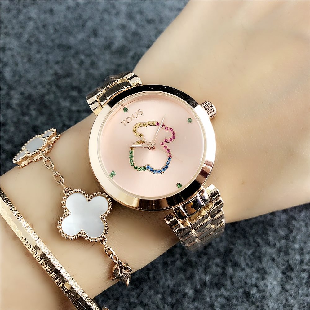 Peach Bear Pattern: The dial is adorned with a peach bear pattern, which is a distinctive symbol of the TOUS brand, adding a touch of liveliness and cuteness to the minimalist dial.