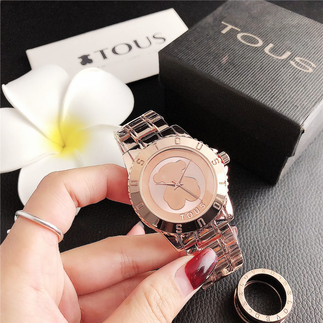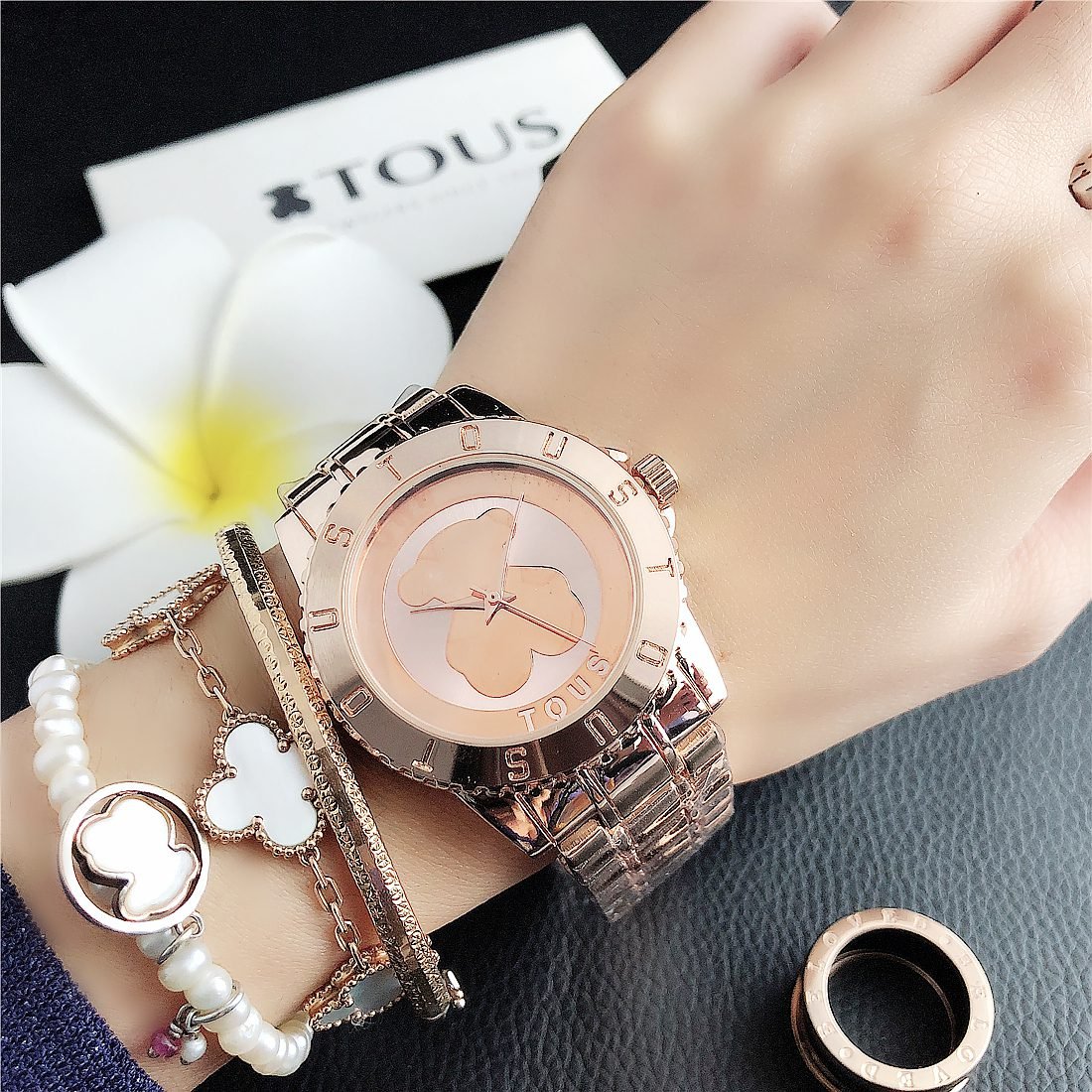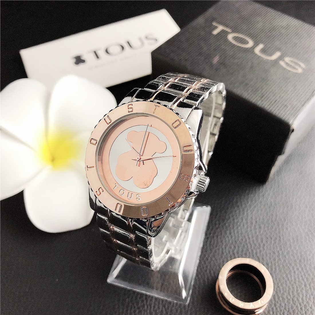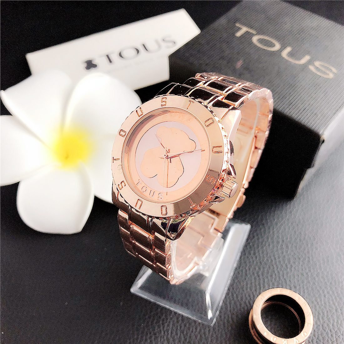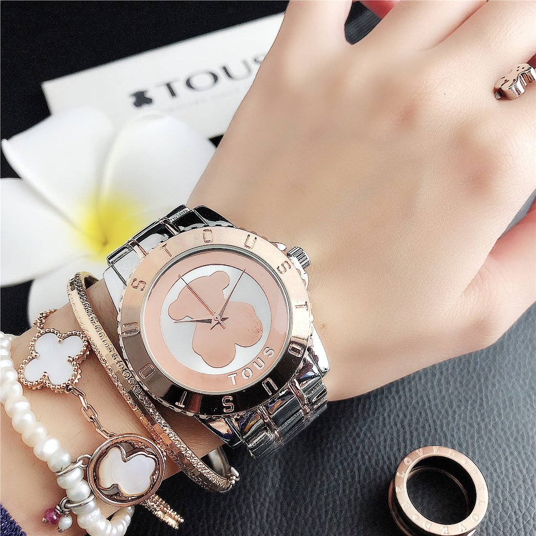 Peach silk pattern: As one of the iconic elements of the TOUS brand, the peach silk pattern (usually a small and delicate bear head) may appear in some form on the dial. This pattern may be subtle, decorative, or become part of the dial design to increase brand recognition.