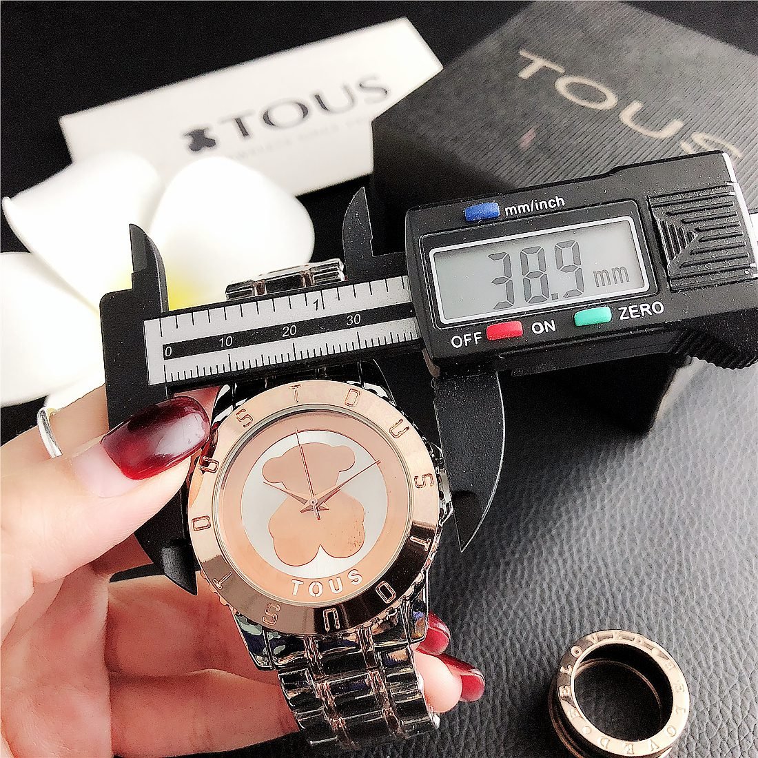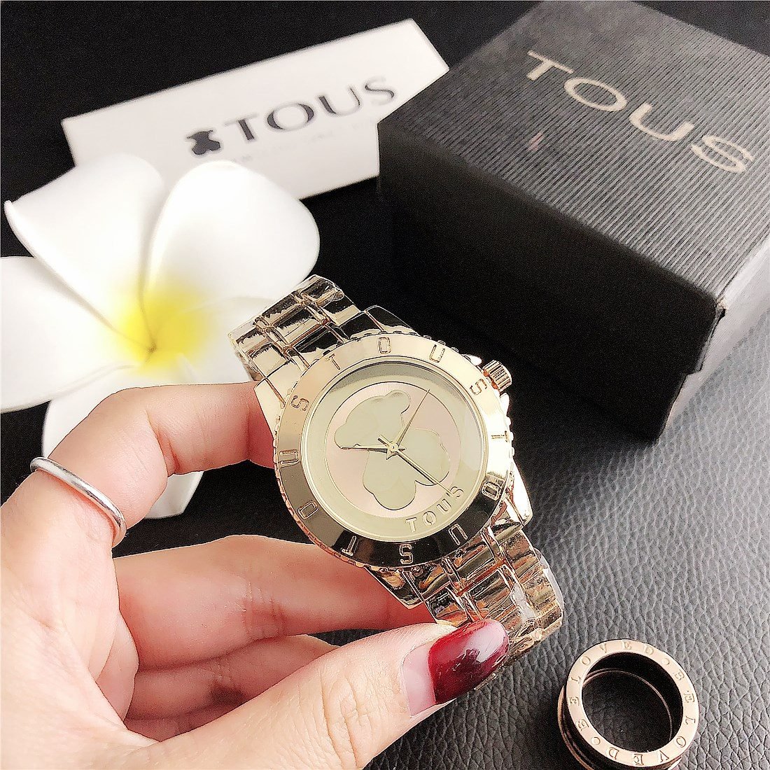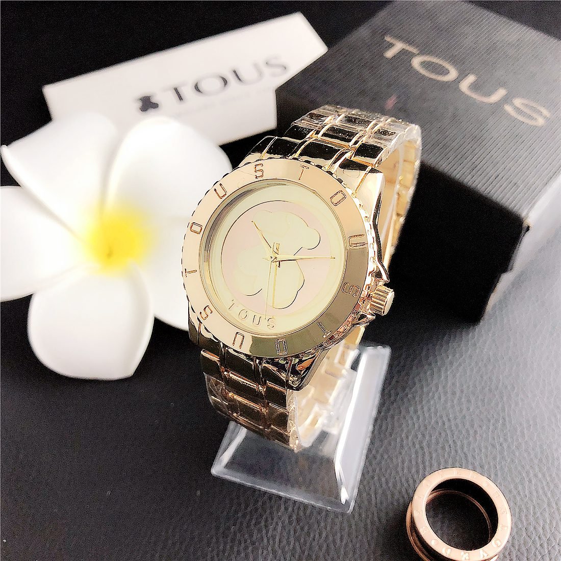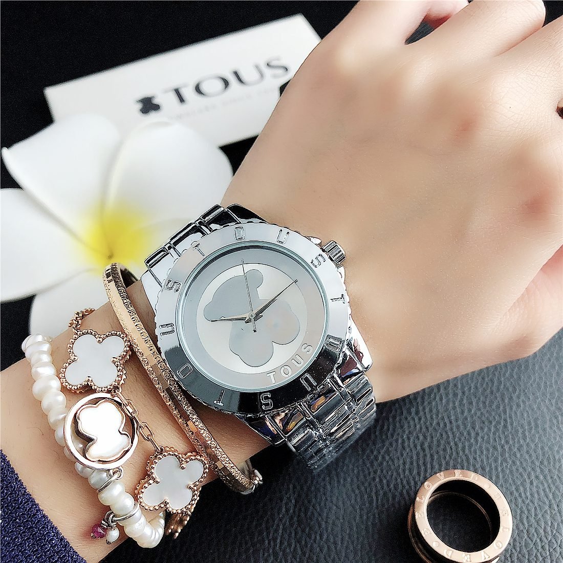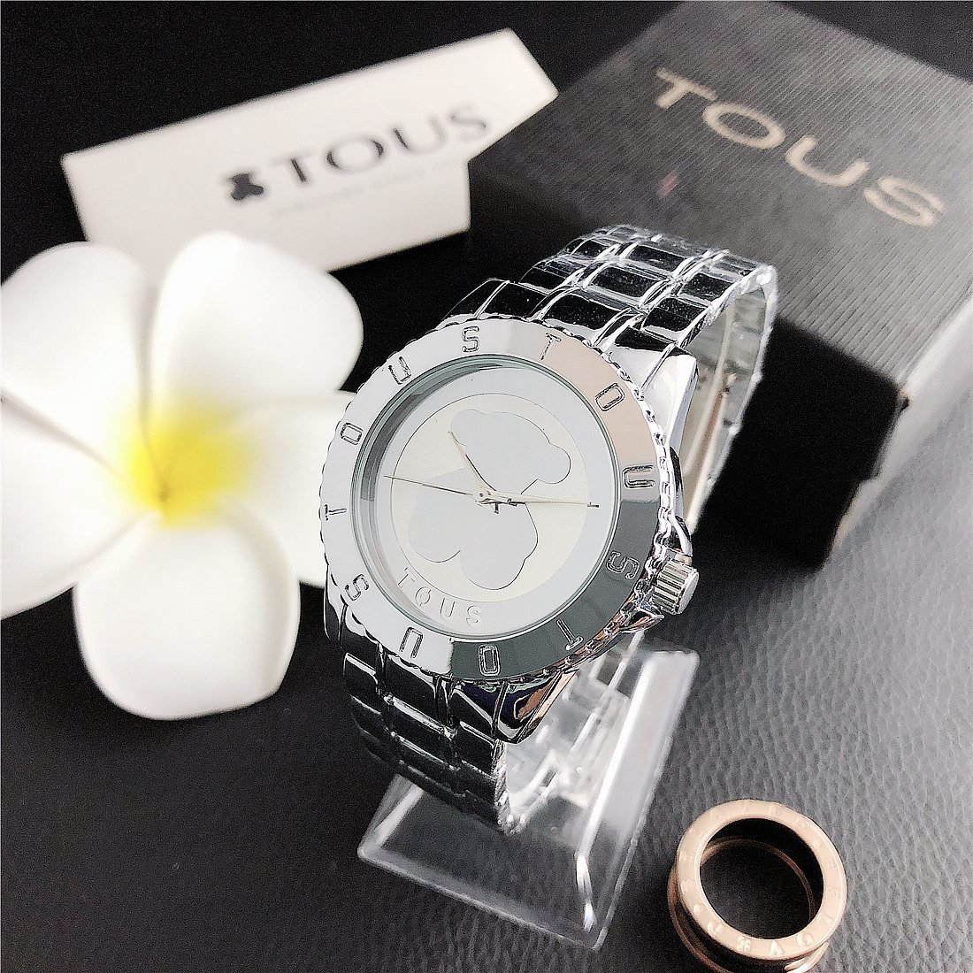 Peach silk pattern: As one of the iconic elements of the TOUS brand, the peach silk pattern (usually a small and delicate bear head) may appear in some form on the dial. This pattern may be subtle, decorative, or become part of the dial design to increase brand recognition.