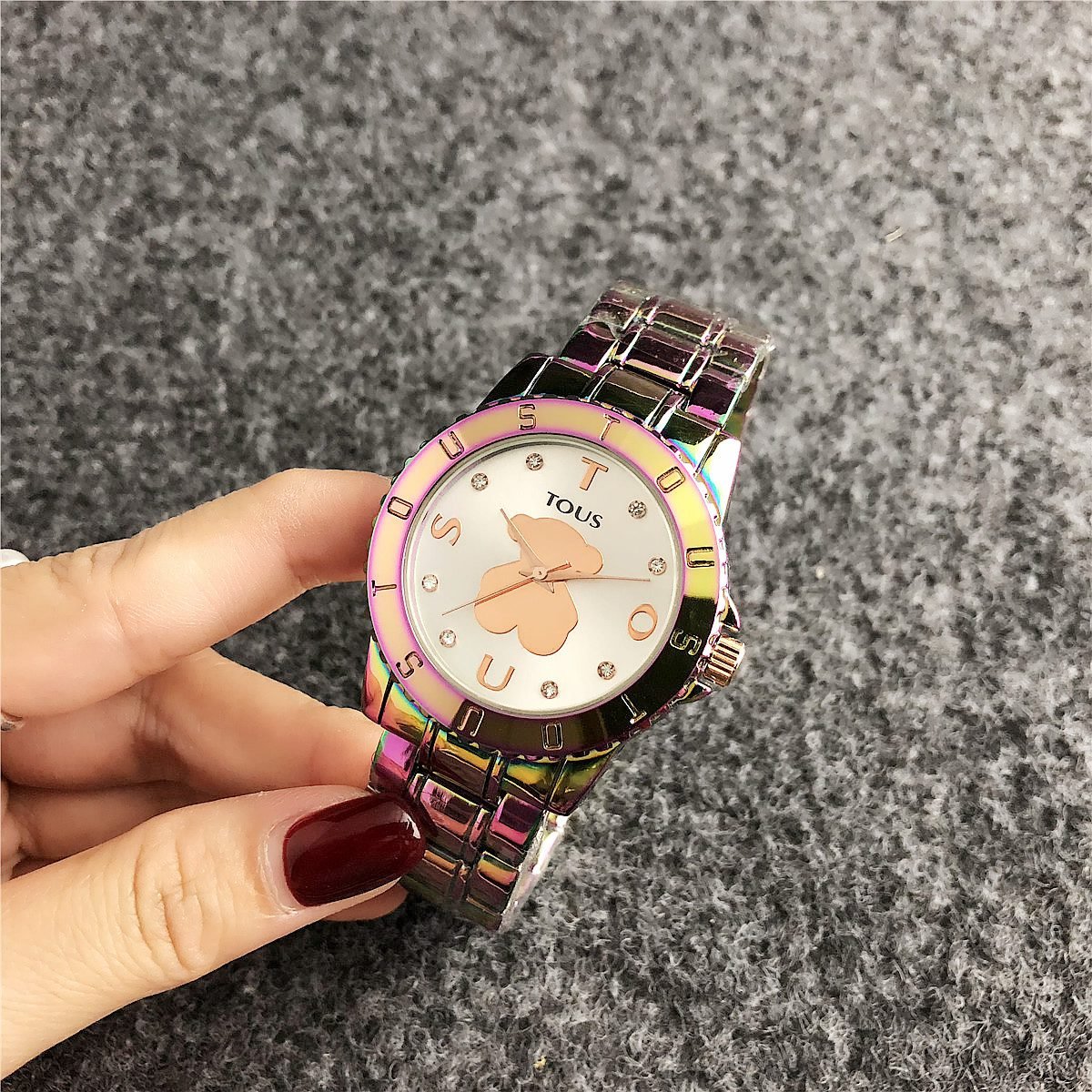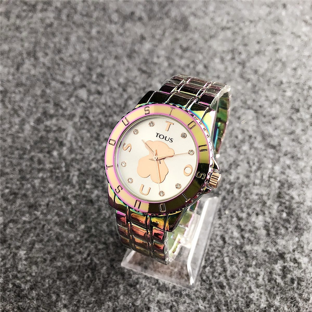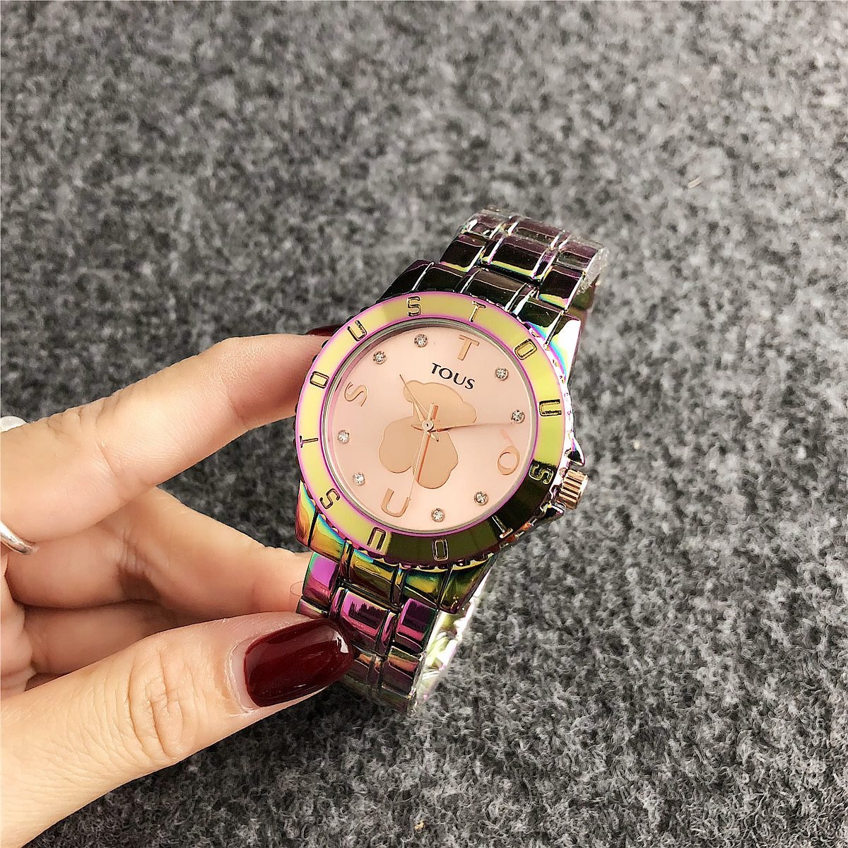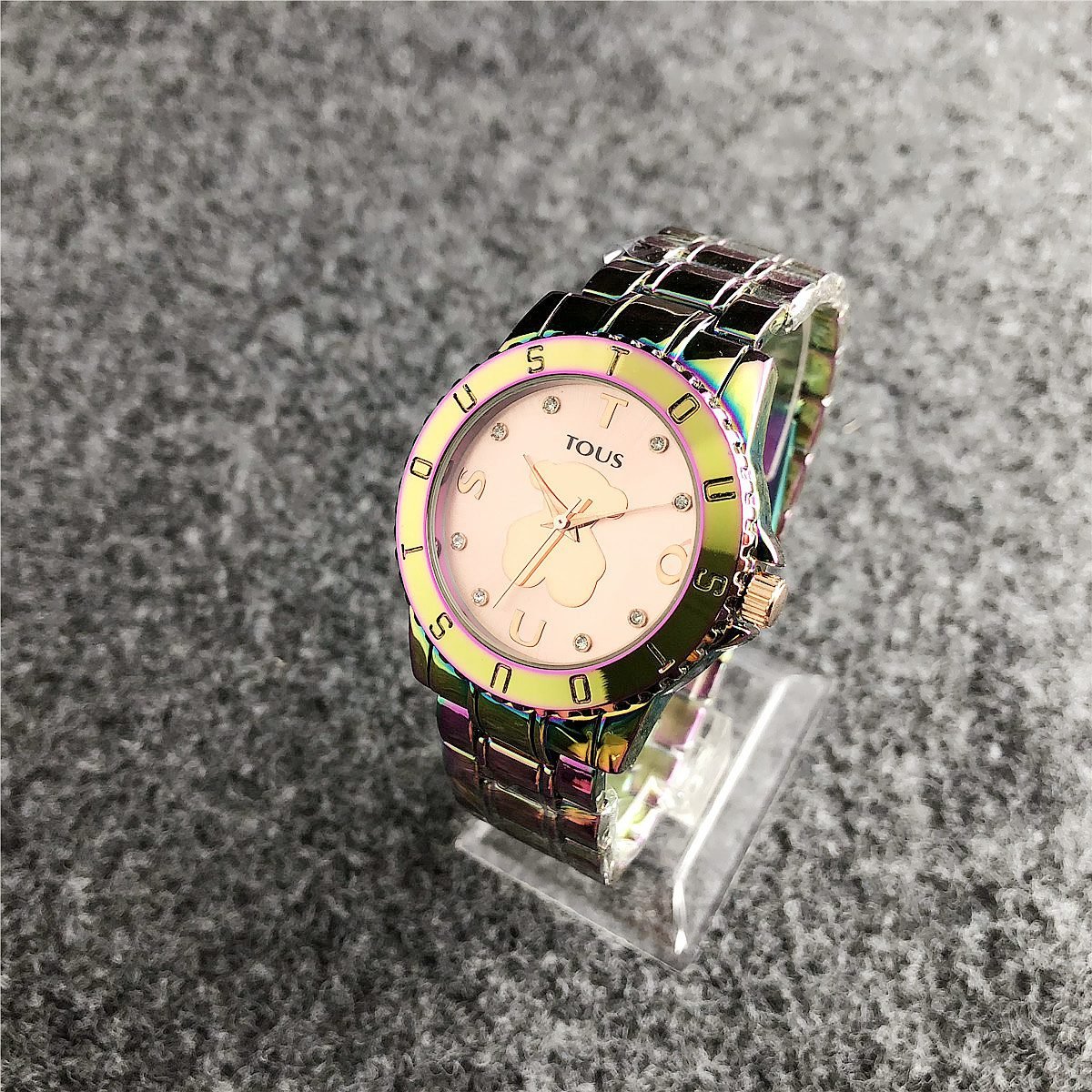 Be the first to review “TOUS watch circular peach silk pattern seven color dial metal steel strip” Cancel reply