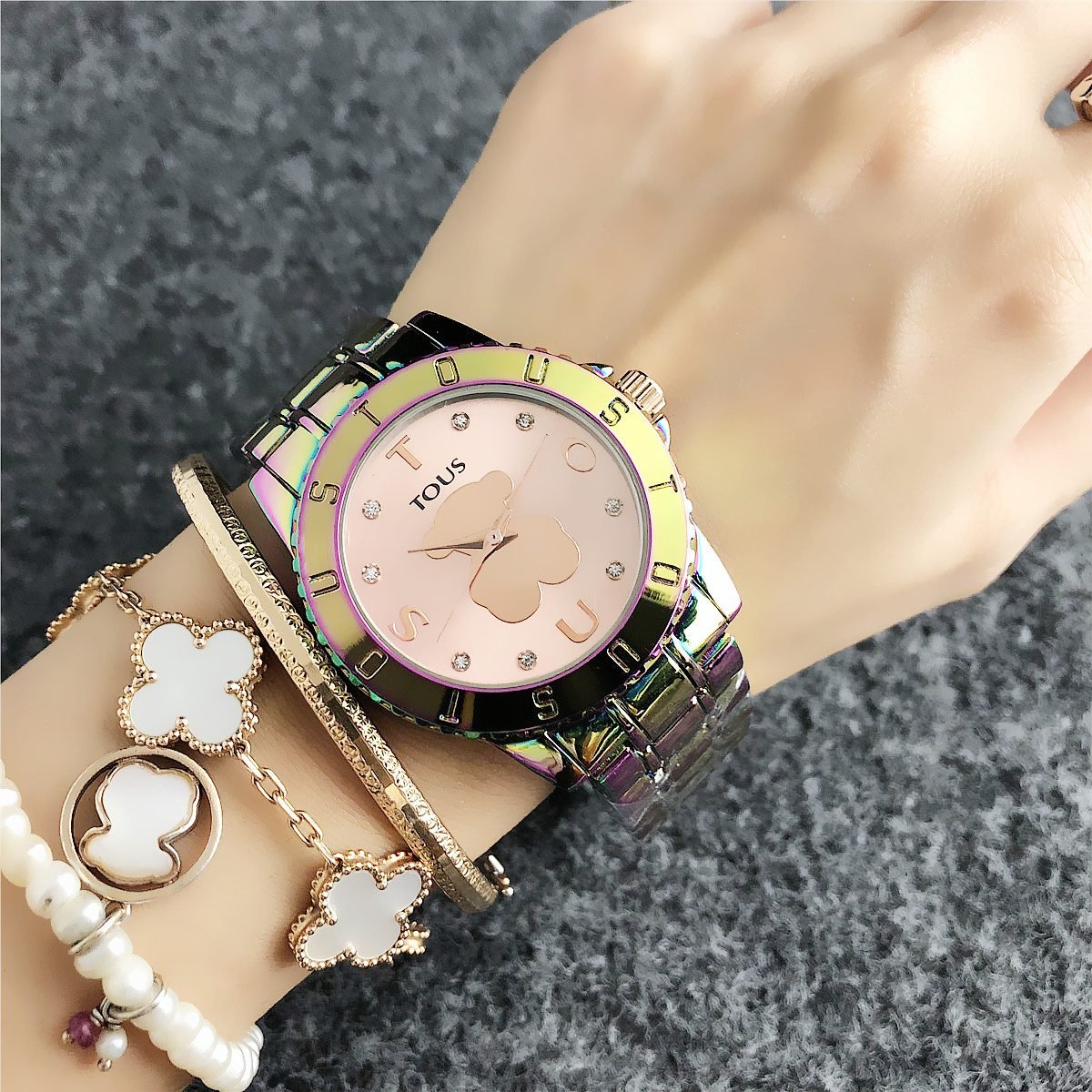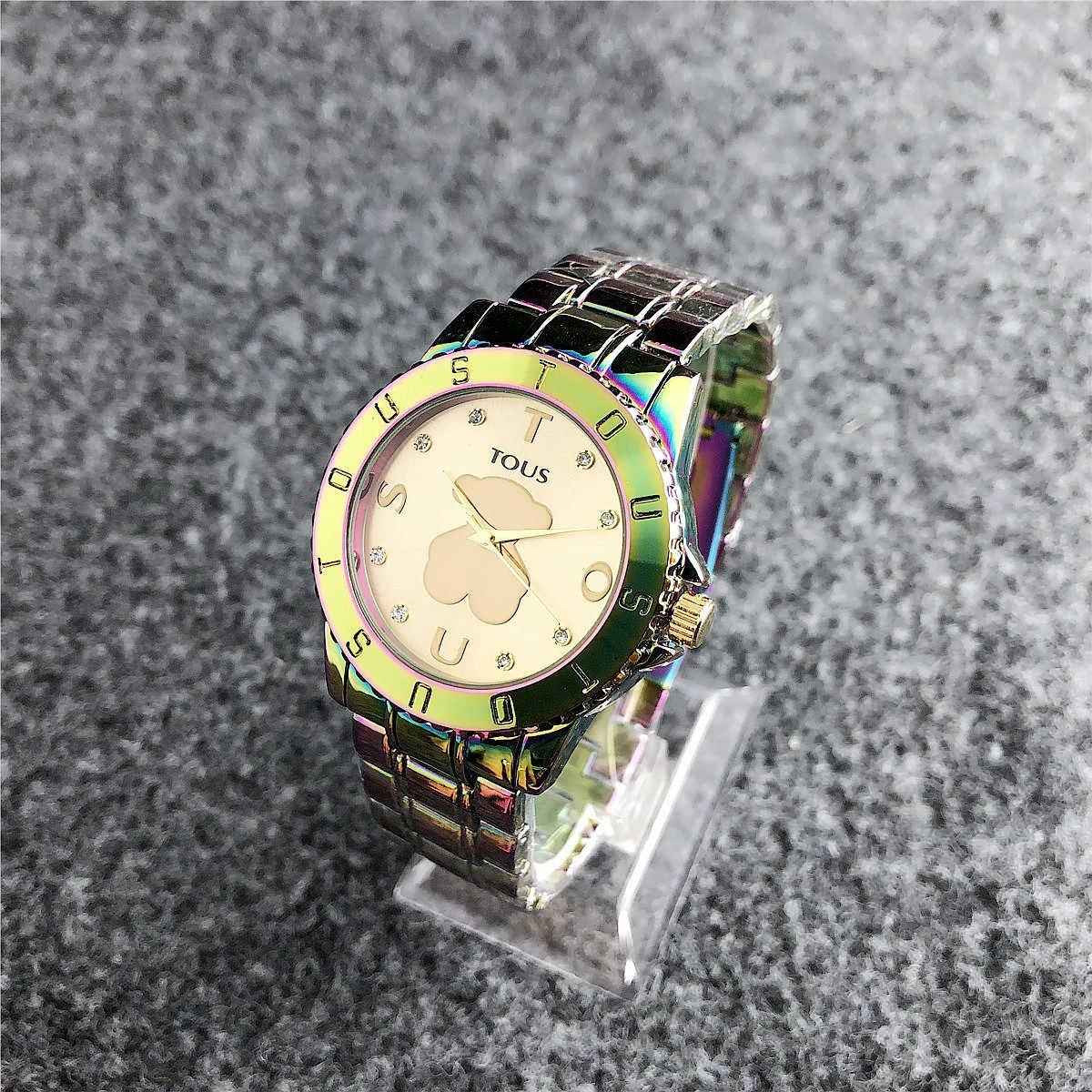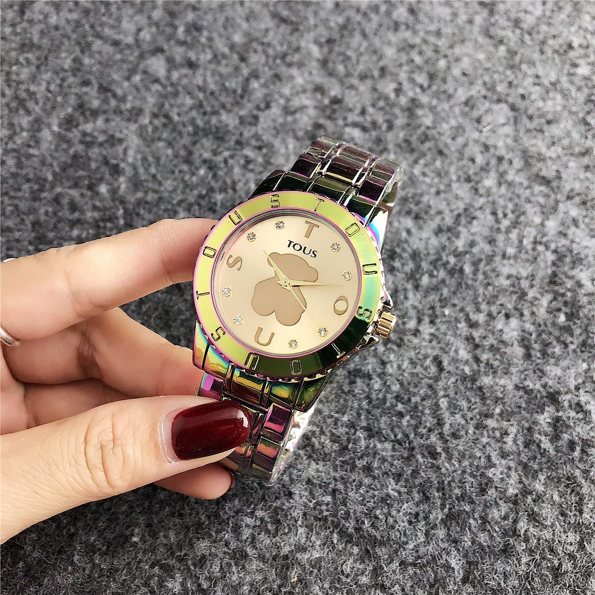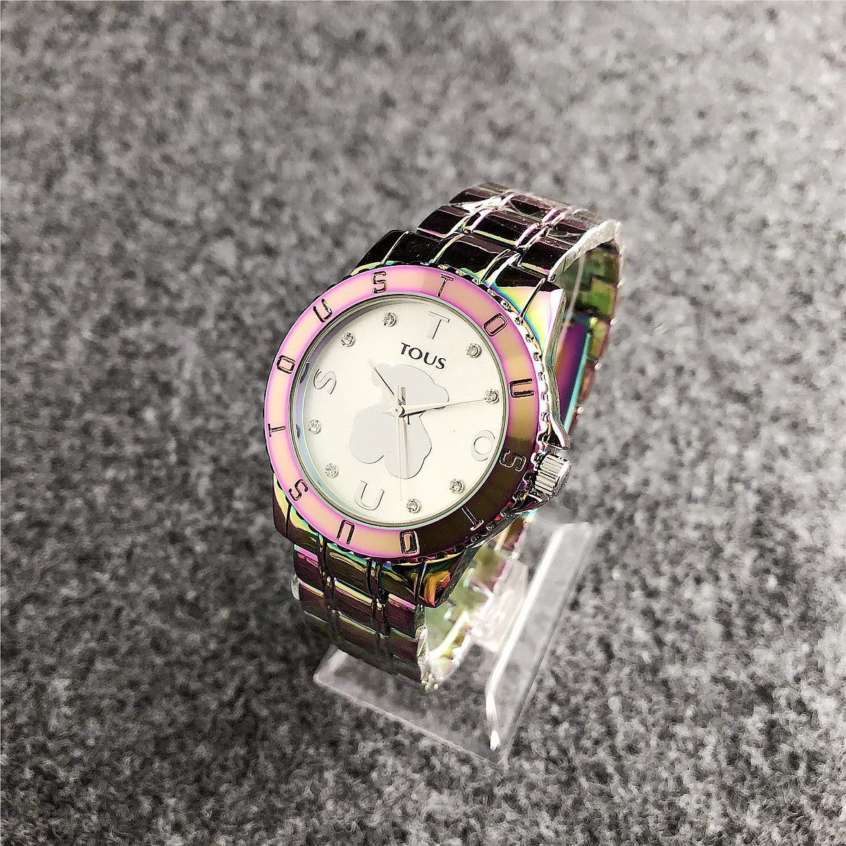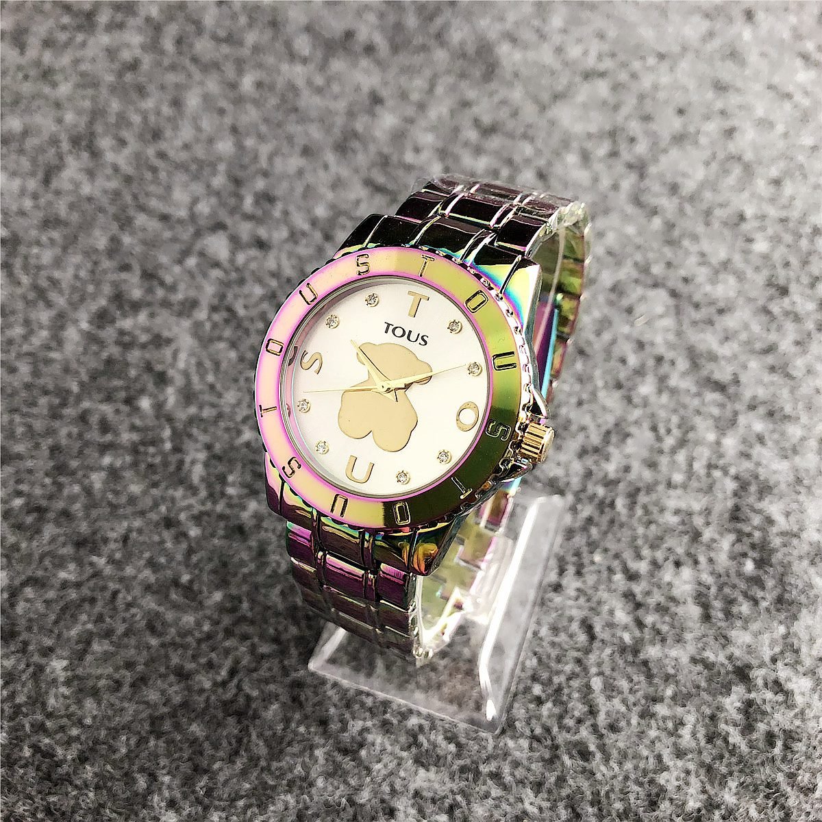 Be the first to review “TOUS watch circular peach silk pattern seven color dial metal steel strip” Cancel reply