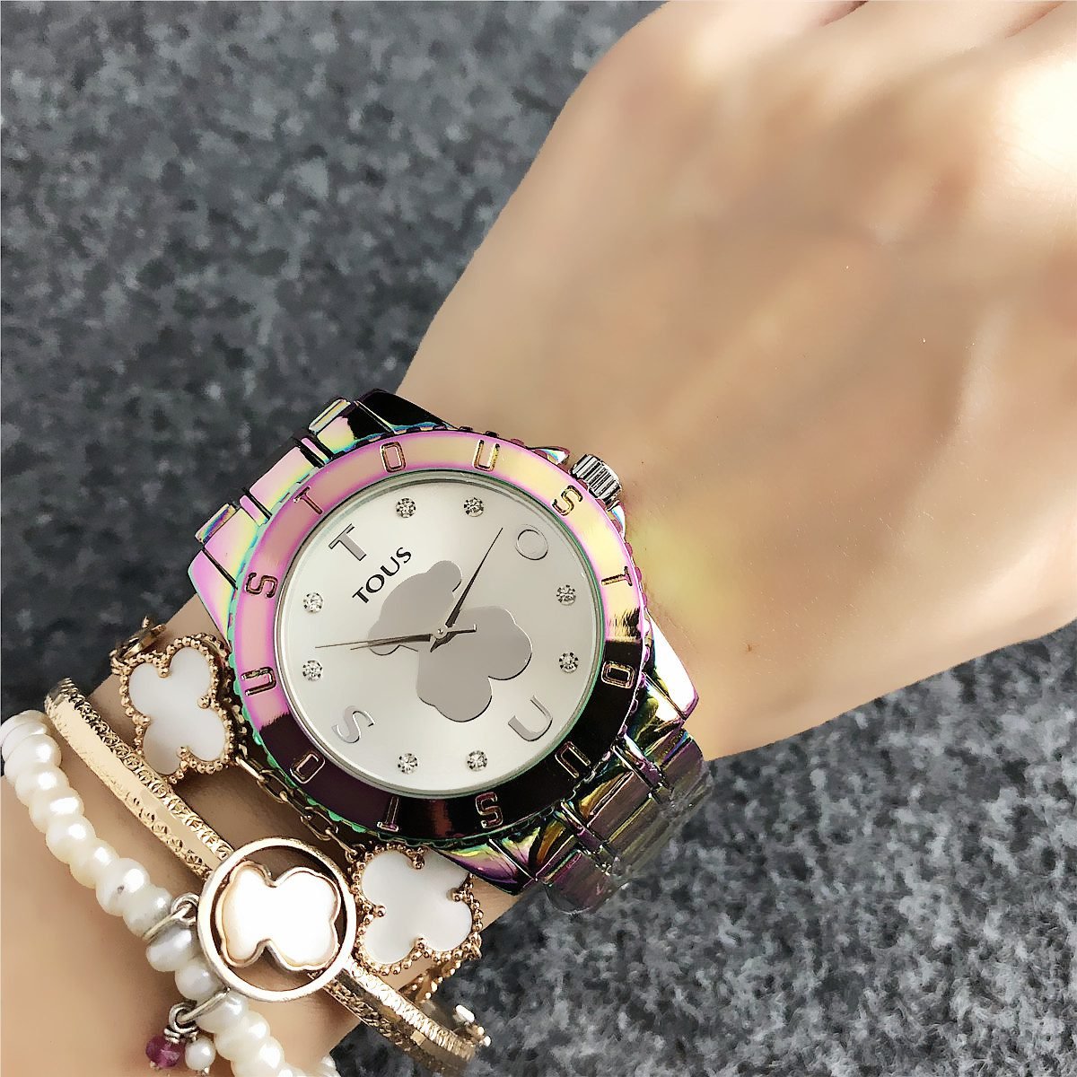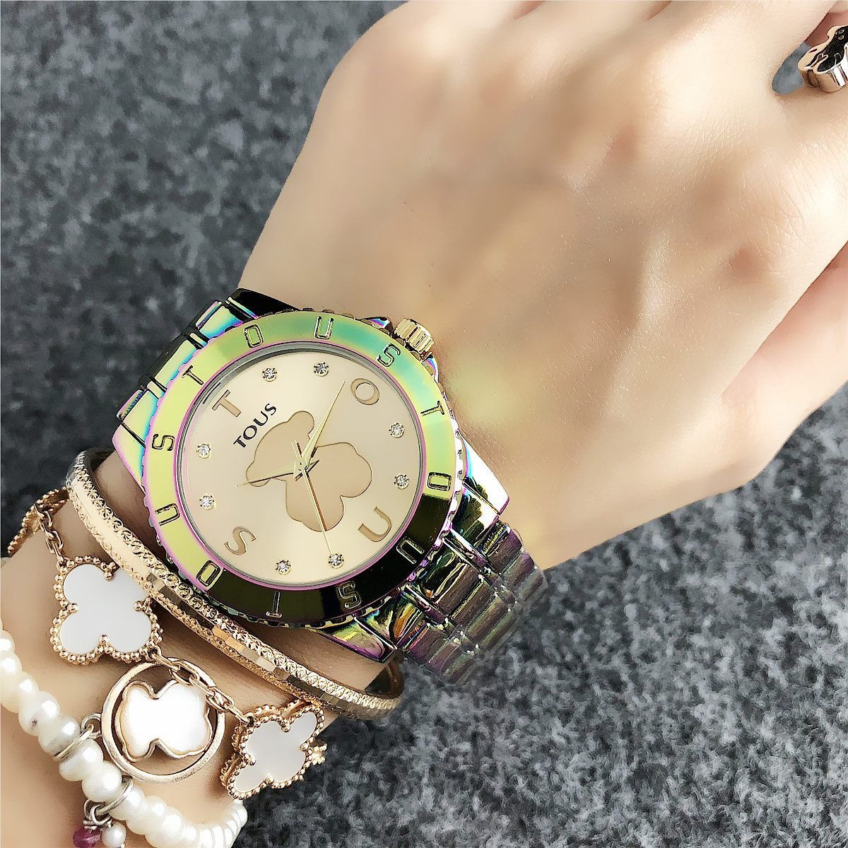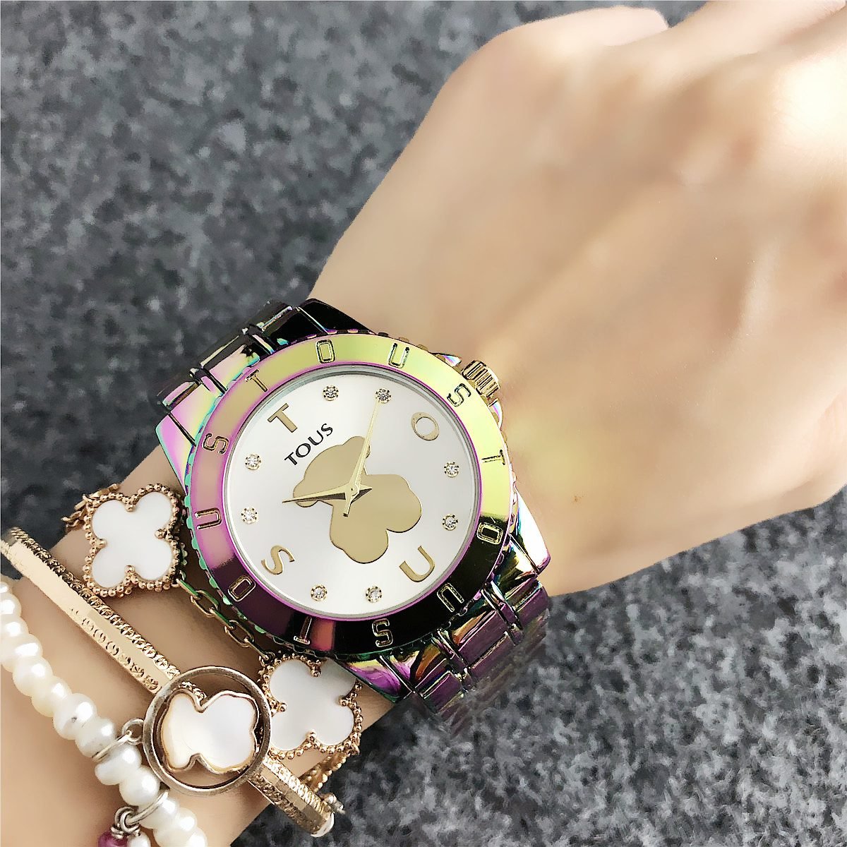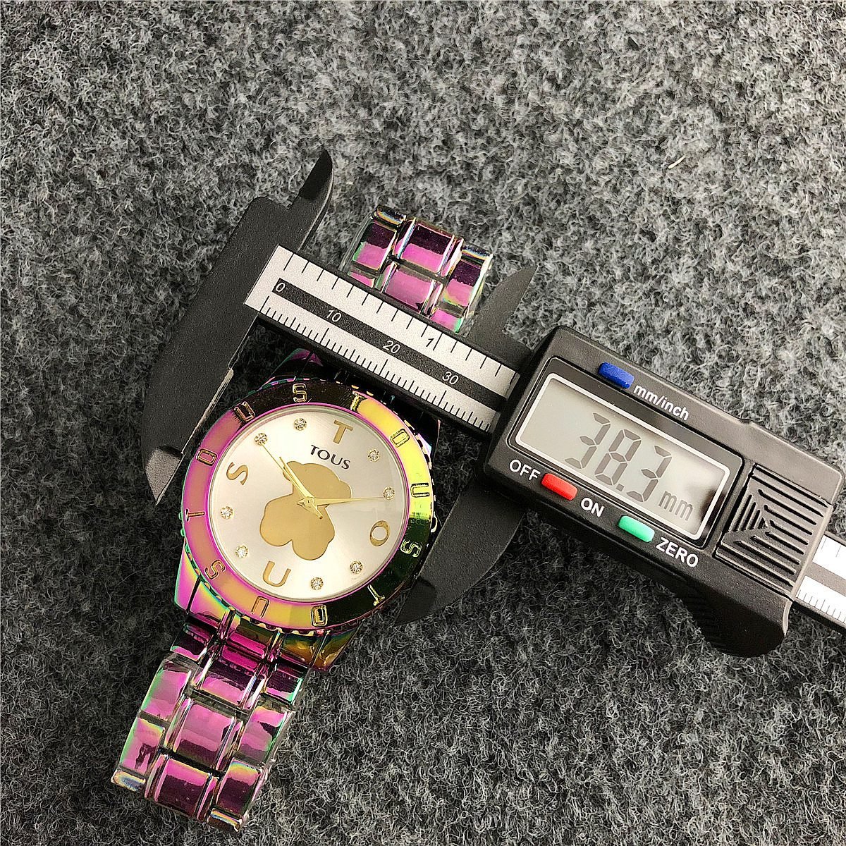 Be the first to review “TOUS watch circular peach silk pattern seven color dial metal steel strip” Cancel reply