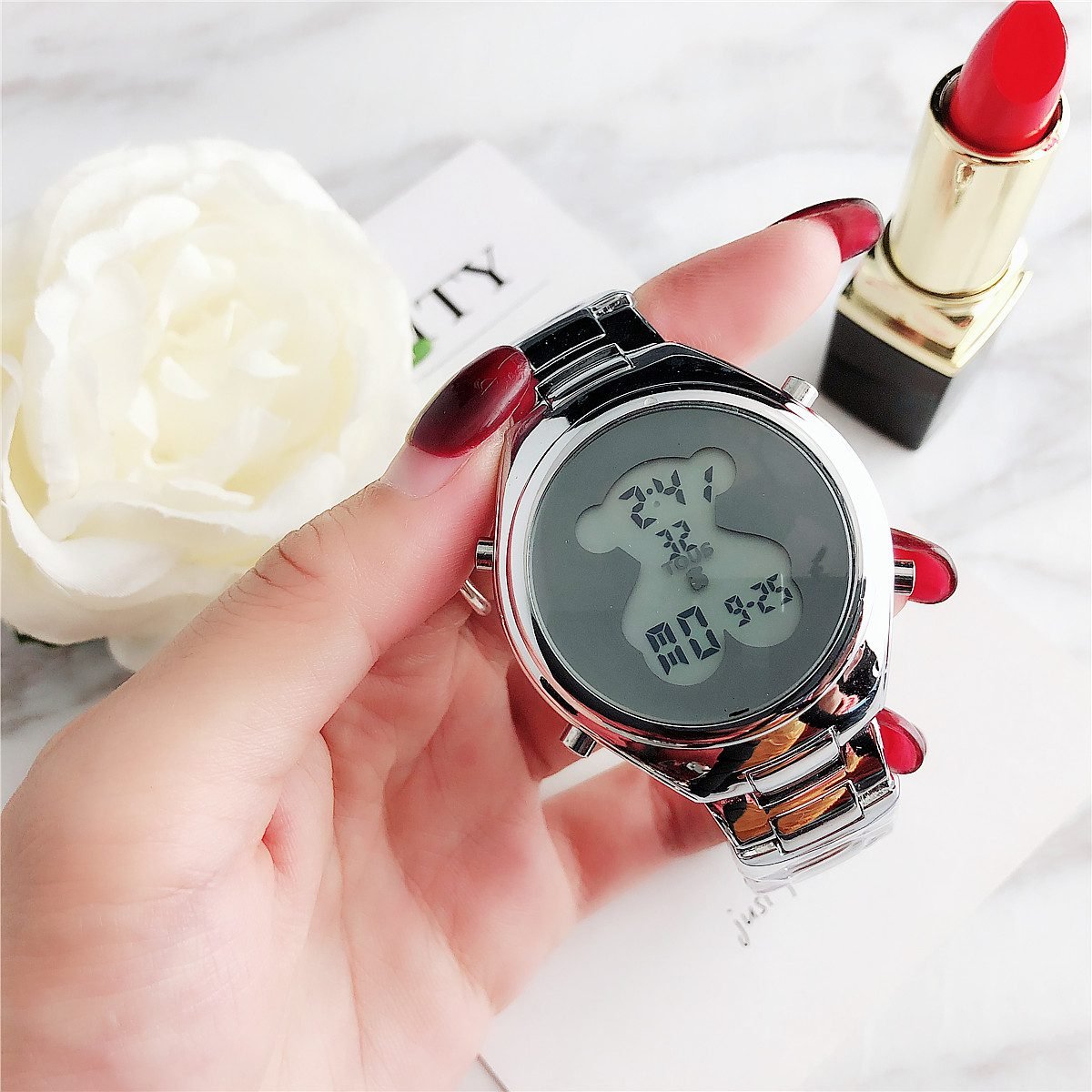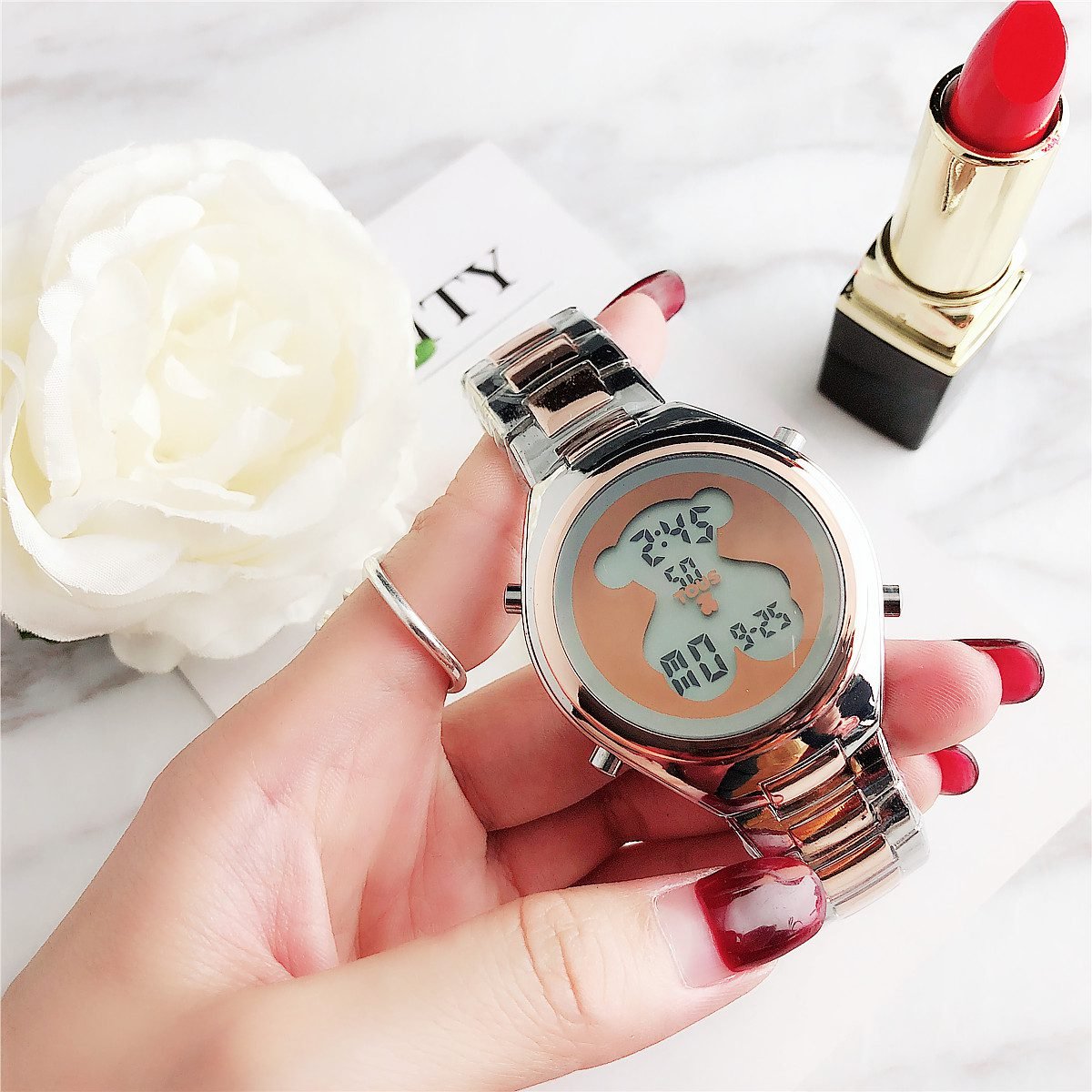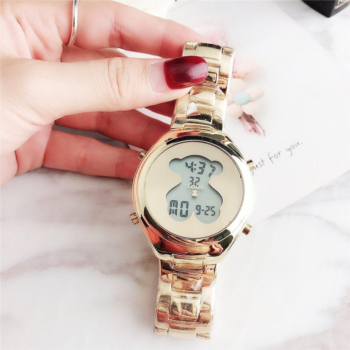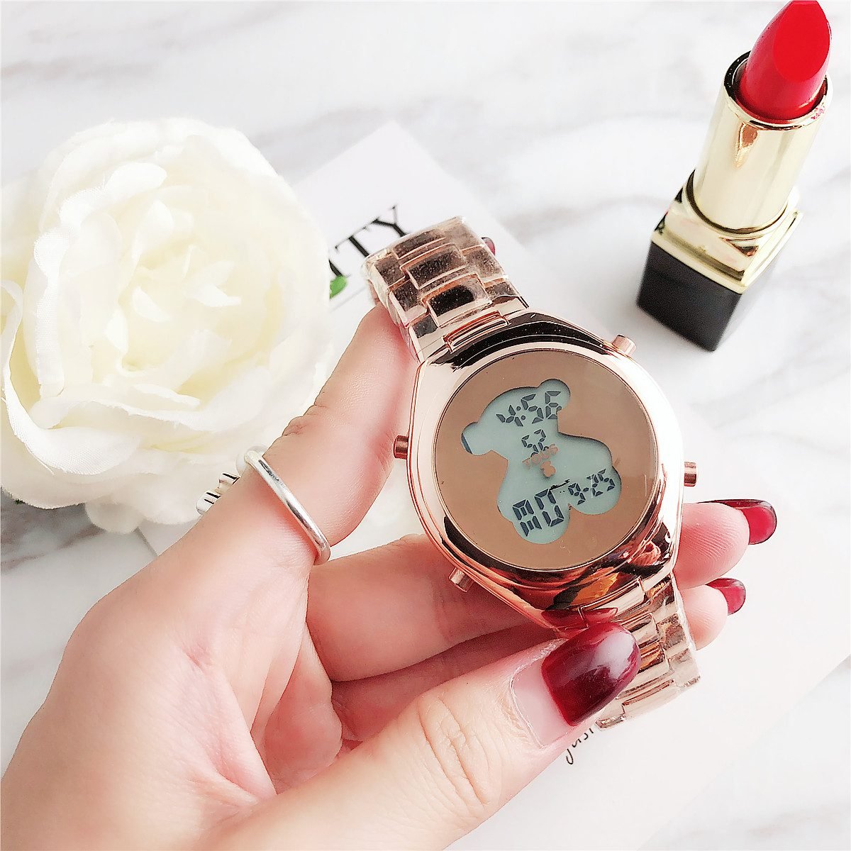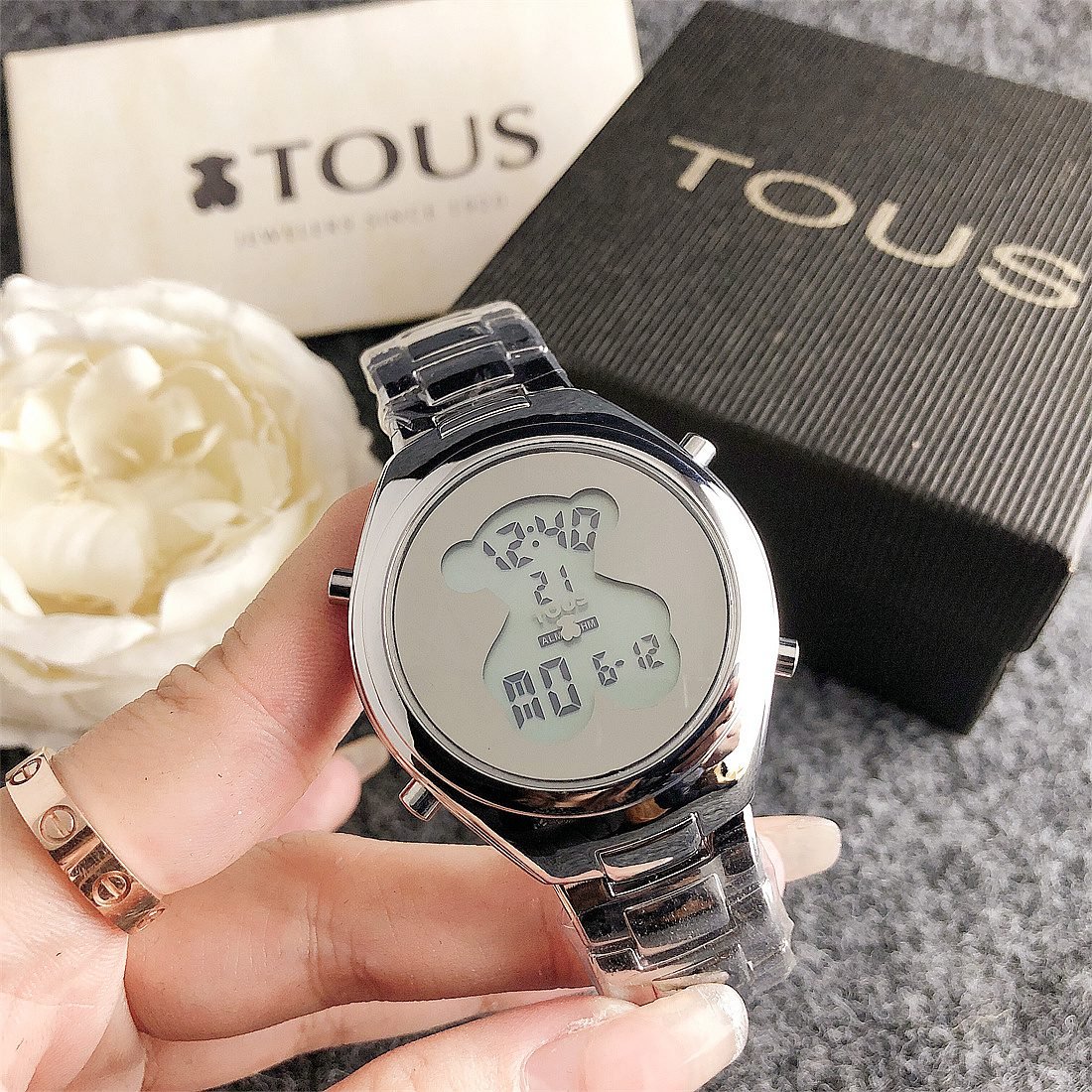 The central position is printed with a peach bear pattern, which is the logo of the TOUS brand, adding unique personality and recognition to the watch.
