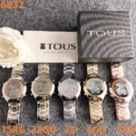 The central position is printed with a peach bear pattern, which is the logo of the TOUS brand, adding unique personality and recognition to the watch.