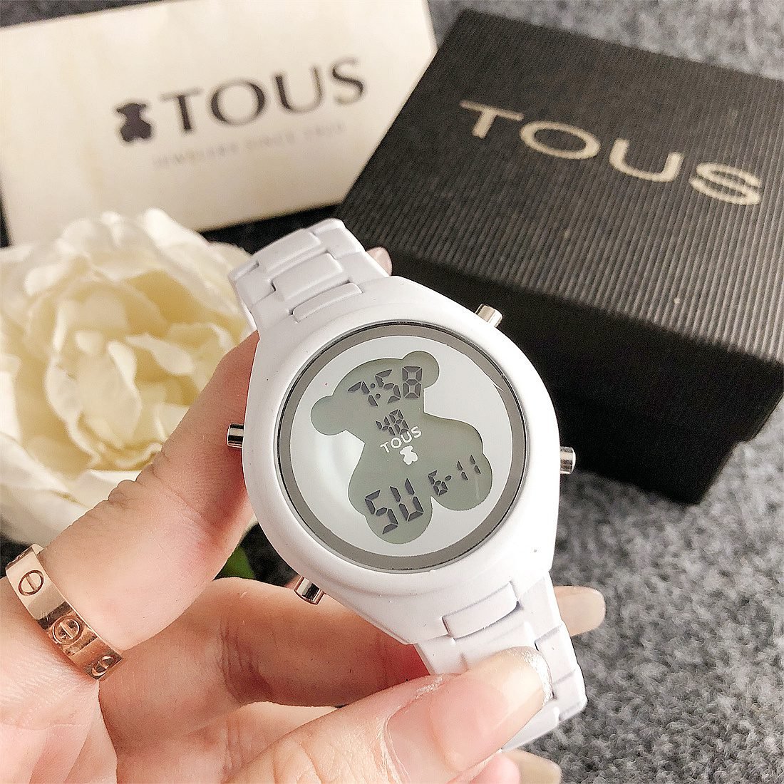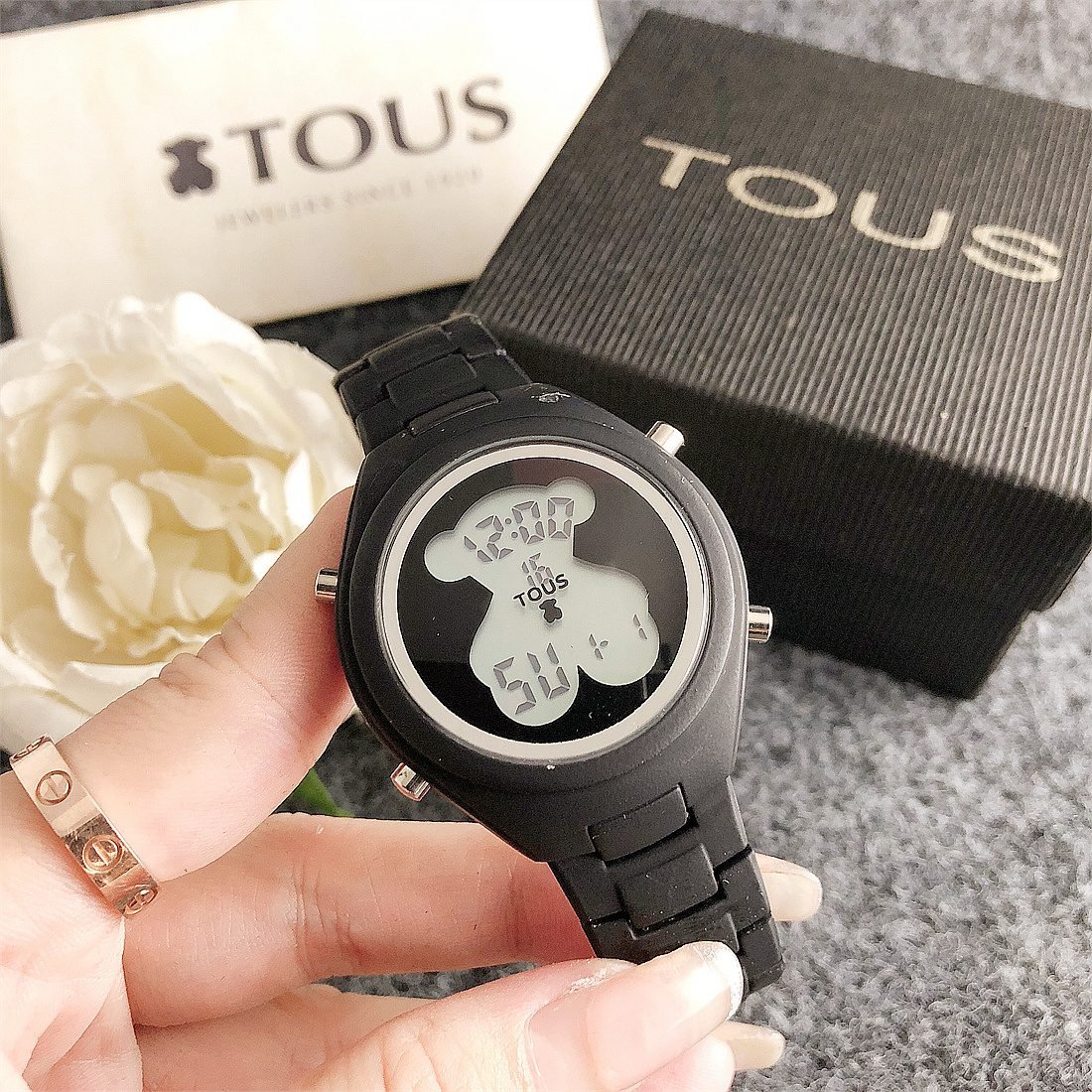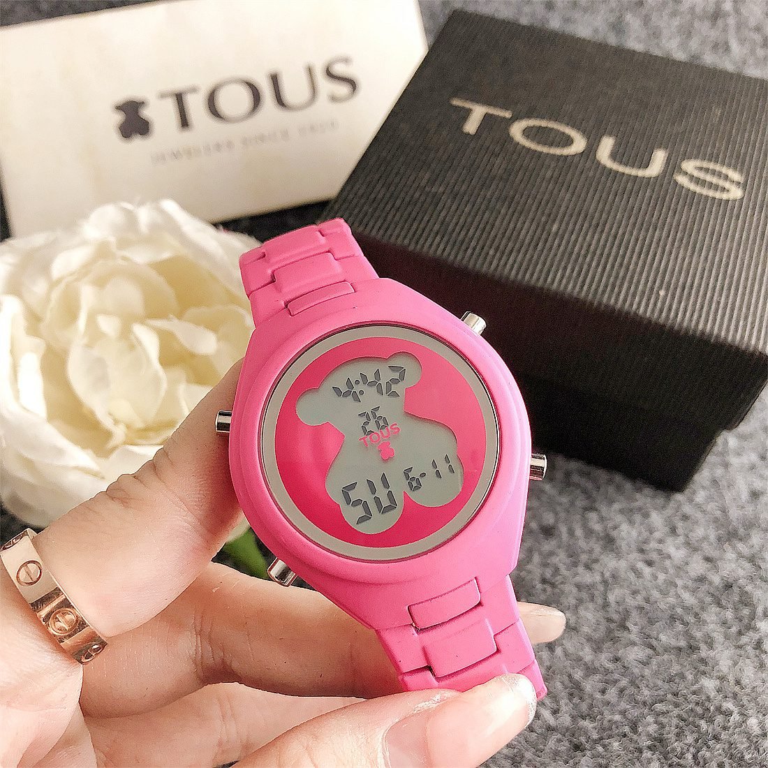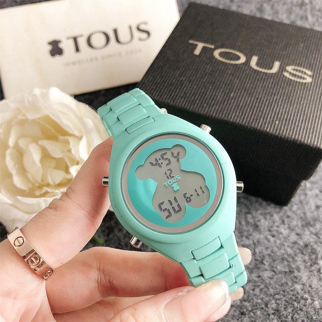 The center of the dial is printed with a peach bear pattern, which is the logo of the TOUS brand, adding unique personality and recognition to the watch. The exquisite details of the peach bear pattern make the entire dial look more vivid and interesting.