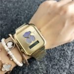 Be the first to review “TOUS watch square peach silk bear pattern needle less dial metal steel strip” Cancel reply