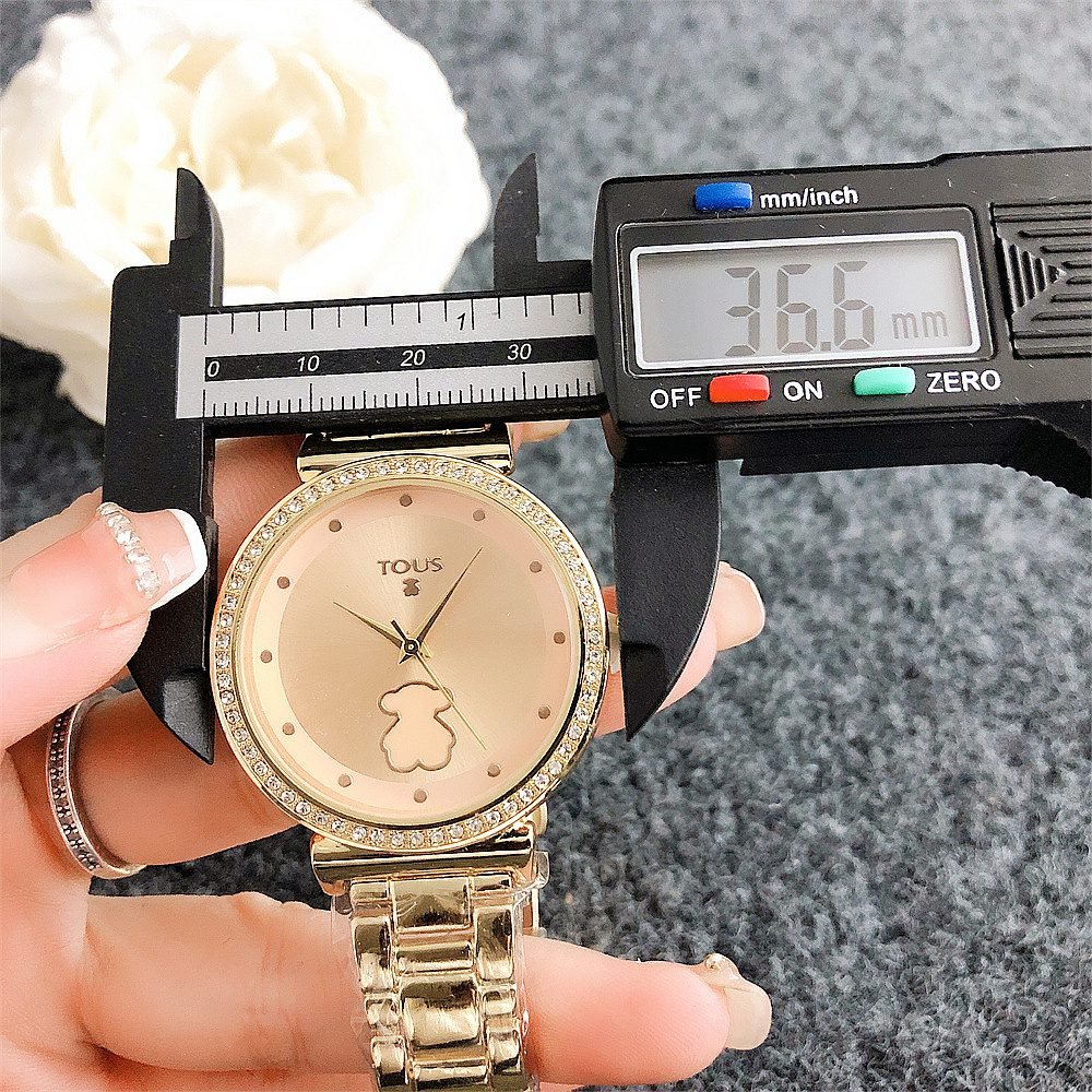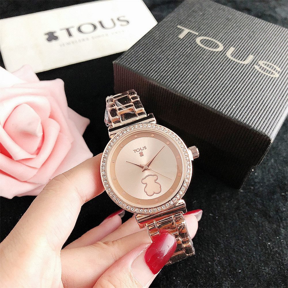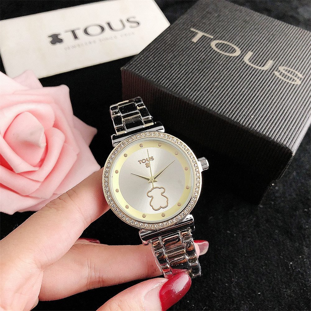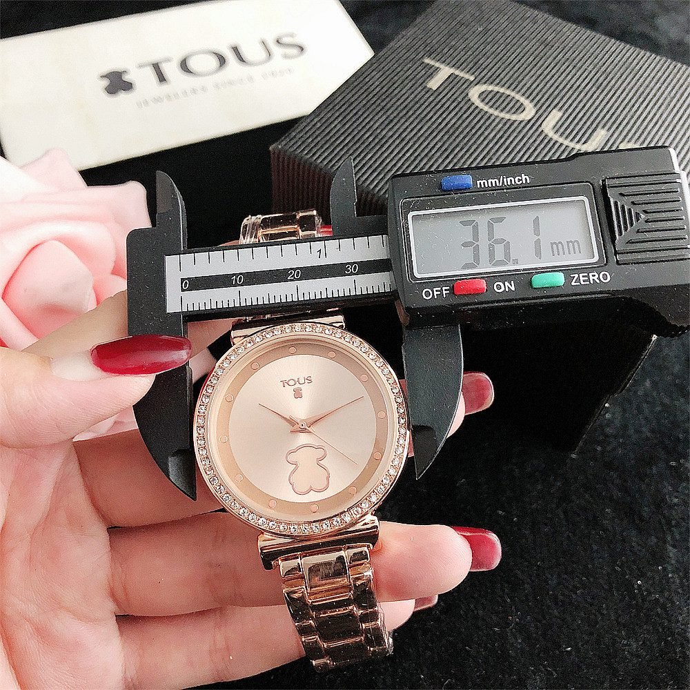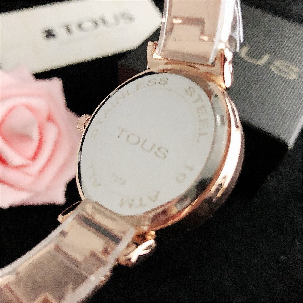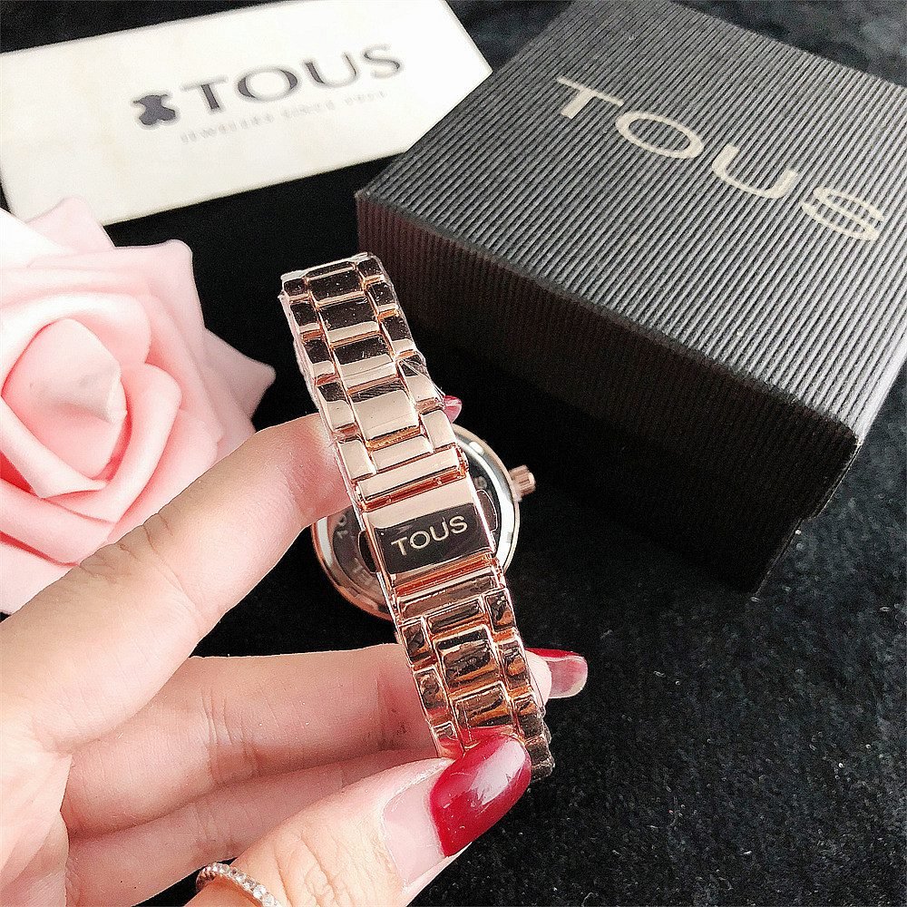 Metal steel strip: Metal steel strip is one of the common types of watch straps in watches, which has the characteristics of being sturdy, durable, and easy to maintain. The metal steel strip of TOUS watches may be made of high-quality stainless steel or other alloy materials, which have been finely polished and polished to present a smooth and bright appearance. The width and thickness of the steel strip may be adjusted according to the overall design of the watch to ensure wearing comfort and stability.