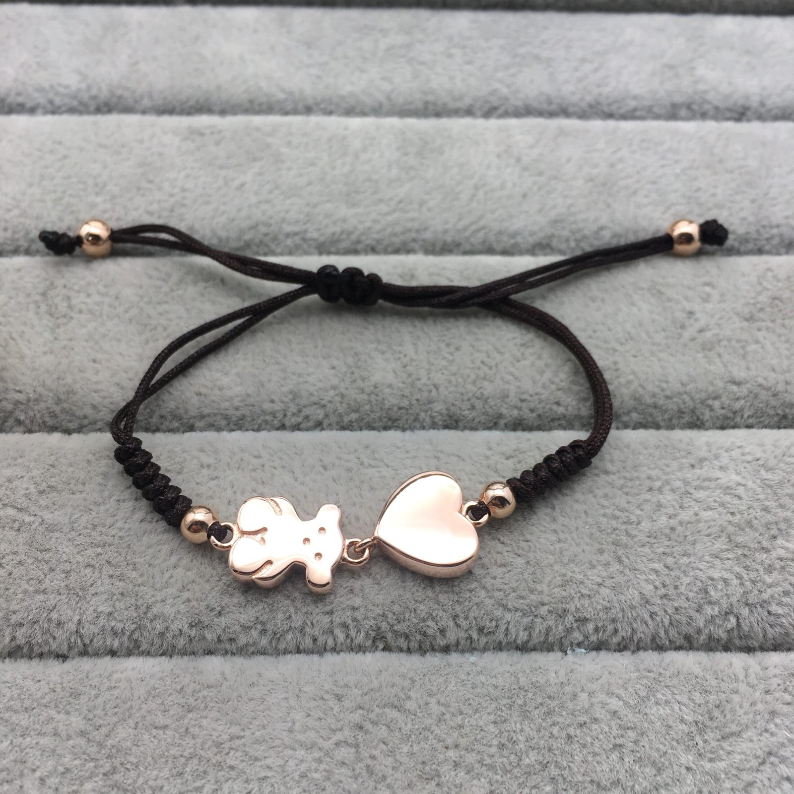 TOUS Sweet Dolls bracelet in rose vermeil silver and brown cord