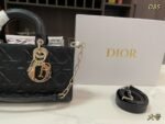 The elegant Dauphine MM handbag is fashioned from blue calfskin with a gold-color LV lock, removable chain, and handle mounts.