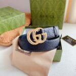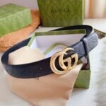 This Gucci luxury gold double G buckle black belt is not only suitable for business occasions, but also can be easily used in leisure time. Whether paired with a suit, shirt, jeans, or casual pants, it can show the wearer’s unique taste and fashion charm. At the same time, it is also an excellent gift for relatives, friends, and partners to show your taste and care.