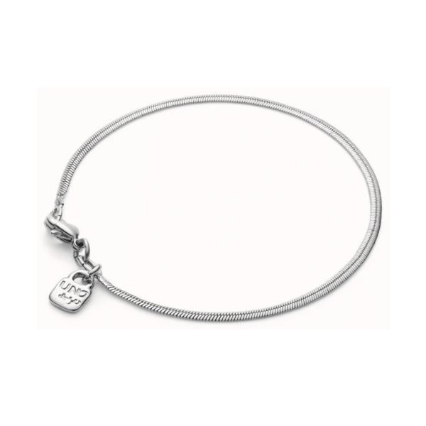 This UNO snake chain bracelet features a polished silver finish and a distinctive lock charm engraved with the UNO logo. Crafted with meticulous attention to detail, its sleek snake chain design blends modern elegance with timeless appeal. Perfect for those who appreciate unique jewelry that makes a subtle yet stylish statement, this bracelet embodies UNO’s commitment to quality craftsmanship and distinctive design—ideal for elevating everyday looks or adding a touch of sophistication to special occasions.