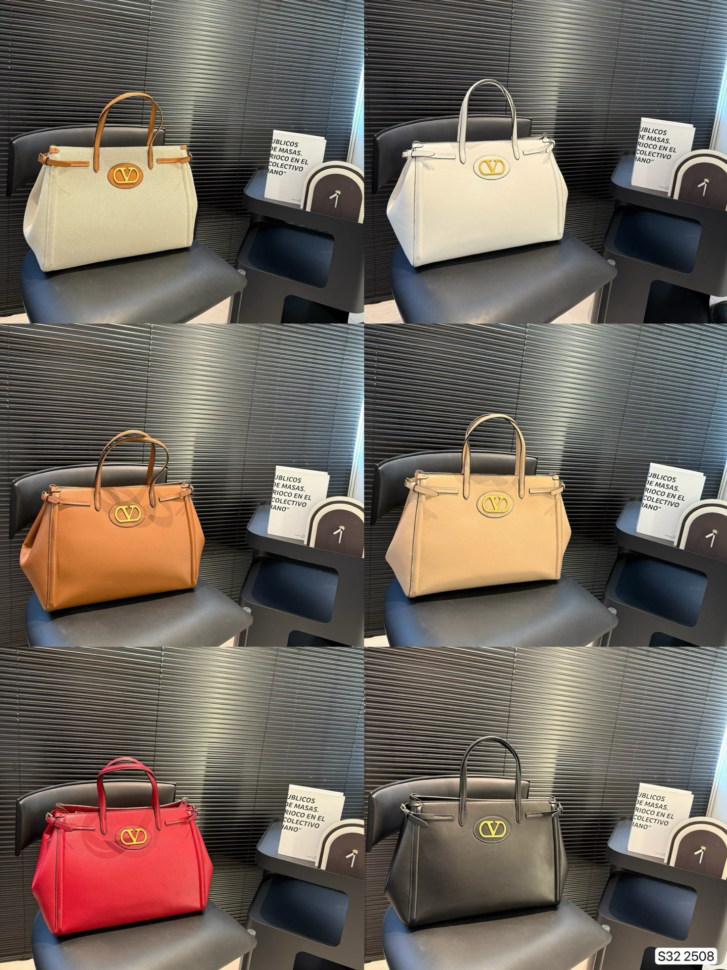 This Valentino tote bag collection showcases premium leather craftsmanship and the iconic gold V-logo hardware, presented in a versatile 35×27cm silhouette. Available in a spectrum of sophisticated hues, these bags blend classic design with everyday functionality. Perfect for those who seek refined luxury, they elevate any ensemble with understated sophistication, embodying Valentino’s legacy of meticulous artistry and timeless style.