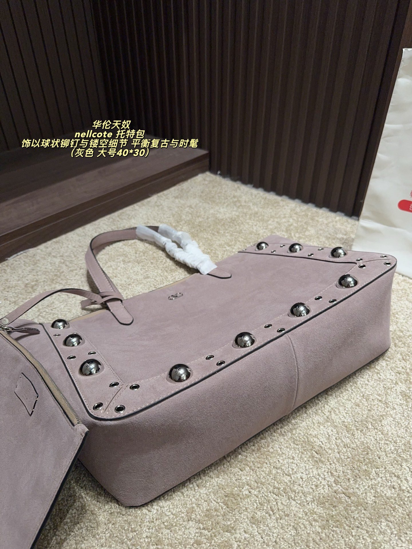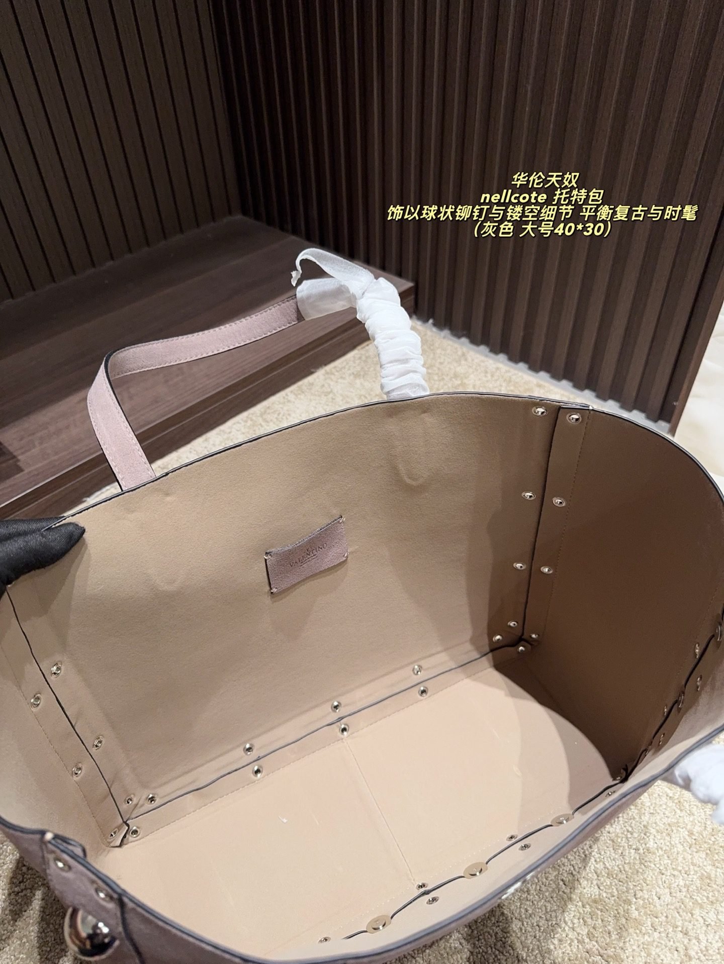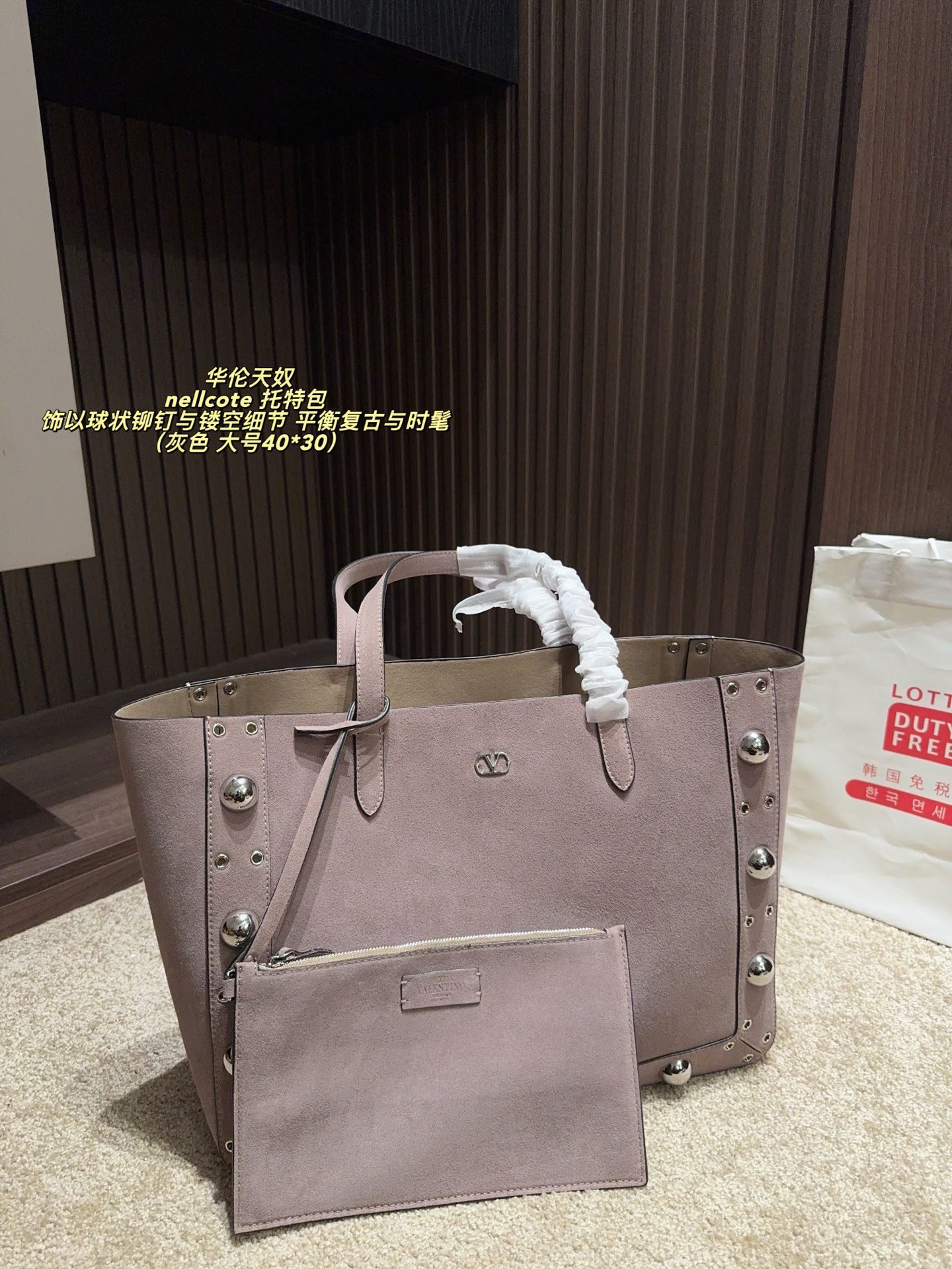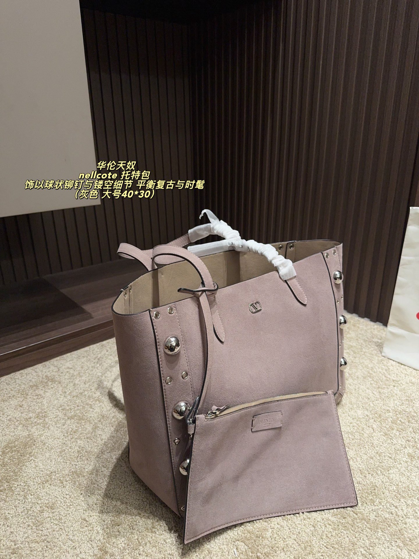 This Valentino Nellcote tote bag collection features sumptuous suede craftsmanship, iconic spherical stud details, and a versatile two-piece set design, available in large (40×30cm) and small (21×17cm) sizes. Blending vintage allure with modern sophistication, these bags strike a perfect balance between retro charm and contemporary style. Ideal for those who crave distinctive, artisanal luxury, they elevate any look with tactile elegance and functional versatility, embodying Valentino’s legacy of innovative design and premium craftsmanship.