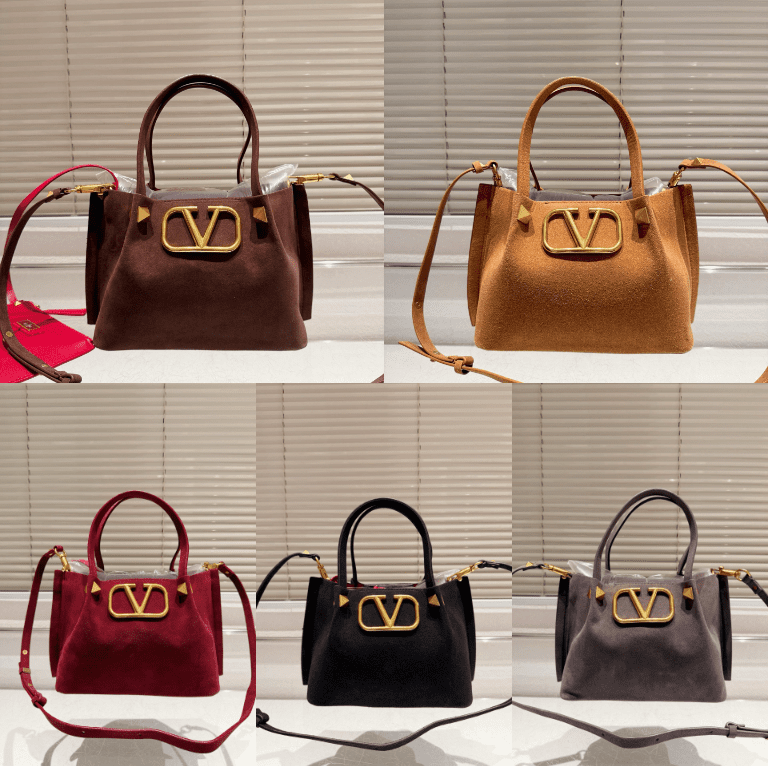 This Valentino suede tote bag features luxurious suede craftsmanship and the iconic gold V-logo hardware, presented in a 25×16cm compact silhouette. Available in a range of rich hues, it blends timeless sophistication with practical versatility. Perfect for those who seek refined, everyday luxury, this bag elevates any look with understated elegance, embodying Valentino’s legacy of meticulous design and premium craftsmanship.