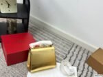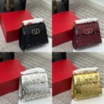 This is Valentino’s iconic V-logo tote bag, centered on the brand’s classic V-shaped metal buckle design. The bag is decorated with scattered rhinestones, combining a leather base with shiny details, balancing luxurious texture and recognition; available in multiple colors such as black, burgundy, silver, and gold, suitable for different occasion styles. With a size of 19*15cm, its capacity can hold small personal items like phones and cosmetics. It supports multiple carrying methods: hand-held, shoulder, and crossbody, fitting formal occasions like dinners and parties, while also adding sophisticated presence to daily outfits. It’s a light luxury item that combines styling and practicality.