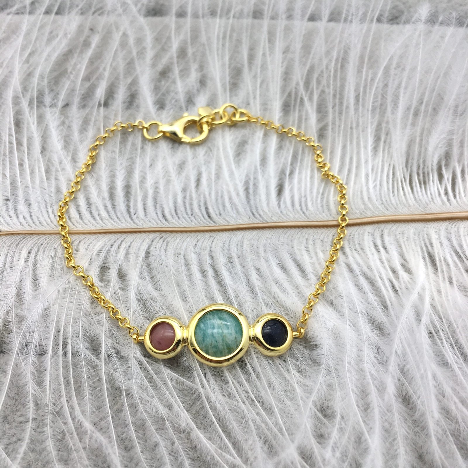 Vermeil Silver Alecia Bracelet with Amazonite, Rose Opal and Quartz with Dumortierite