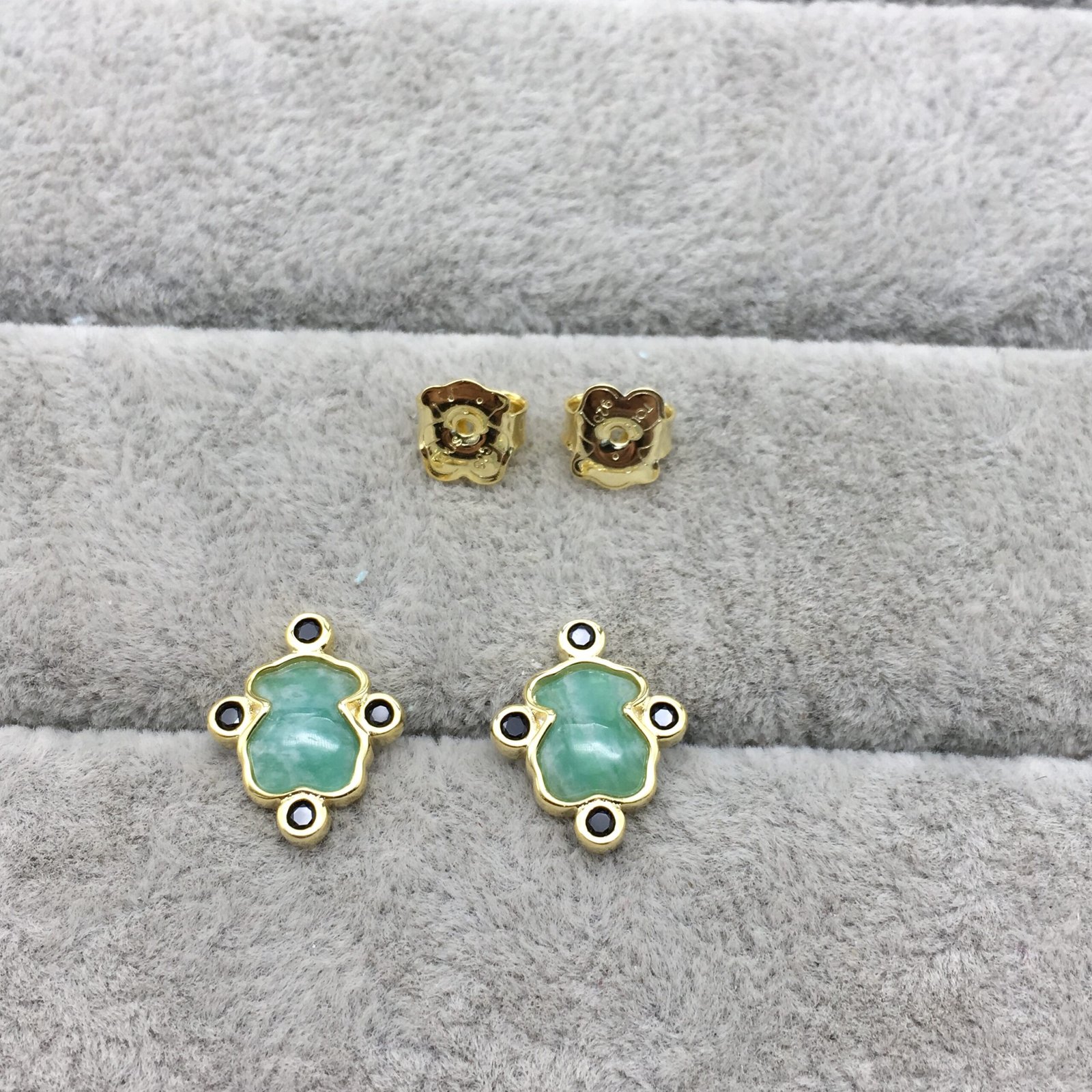 Vermeil Silver Color Power Earrings with Amazonite and Spinels