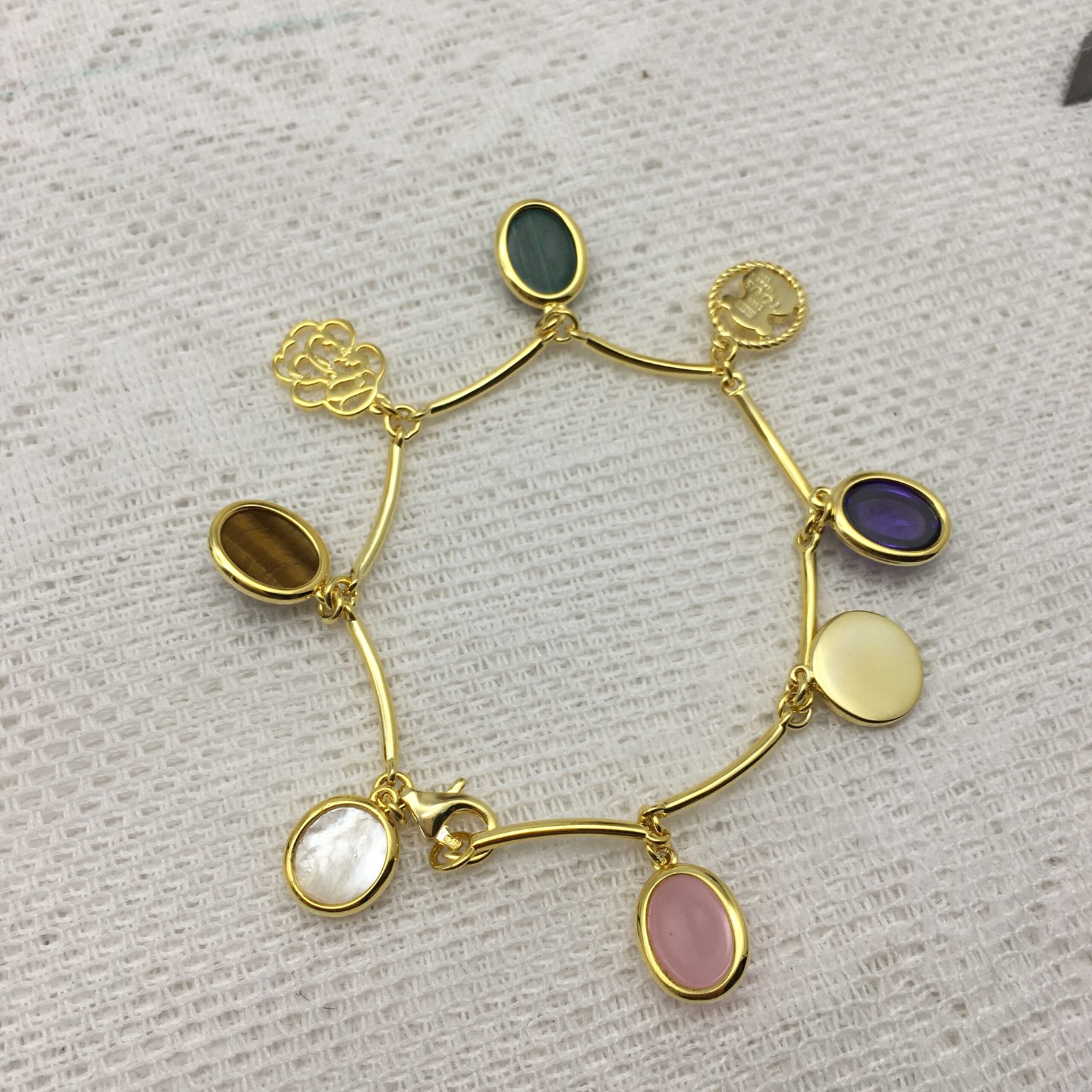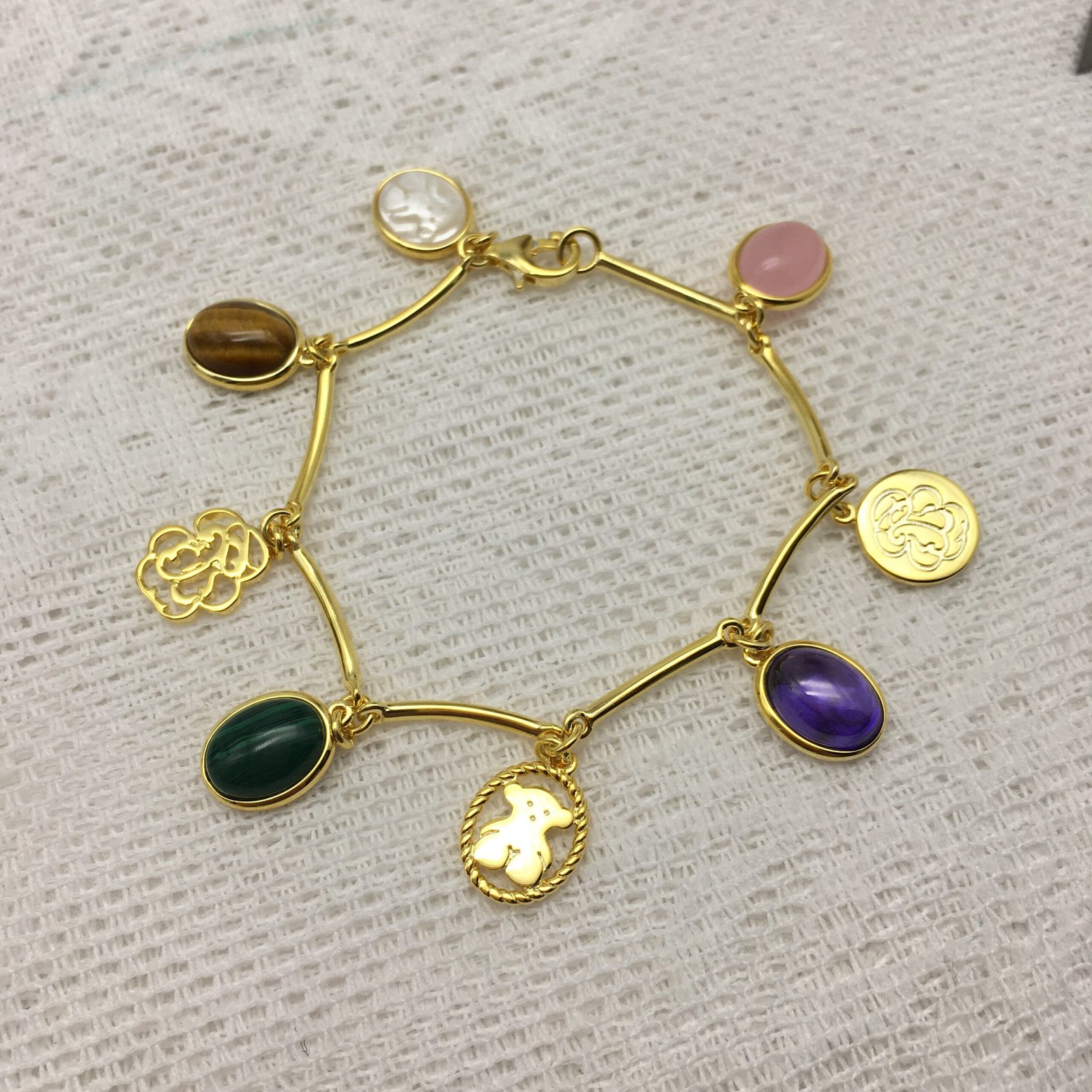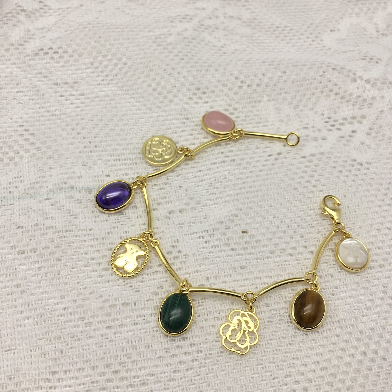 Vermeil Silver TOUS Camee Bracelet with multicolor Gemstones