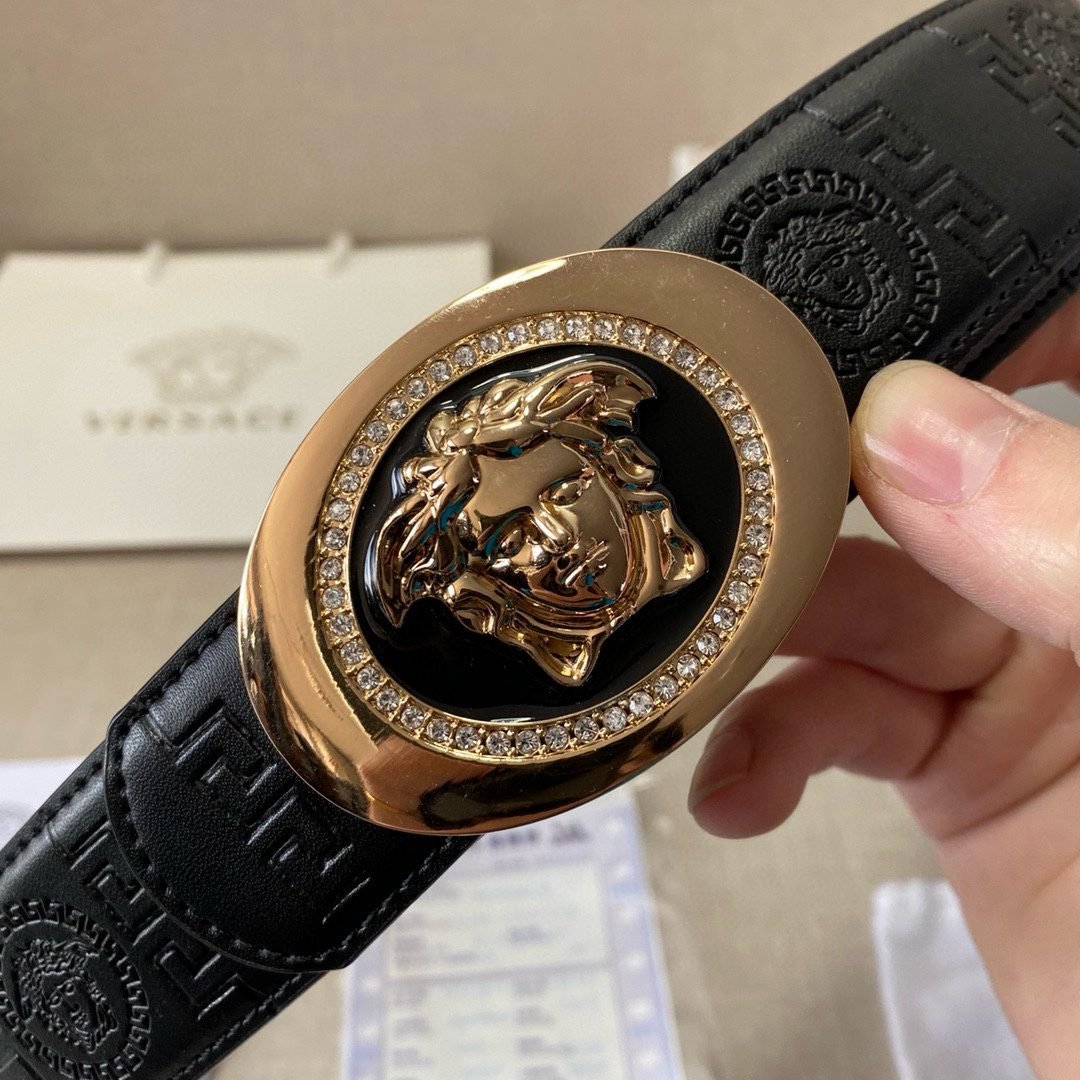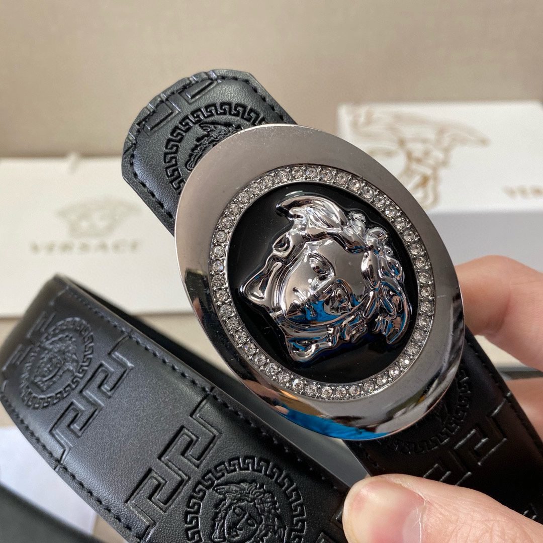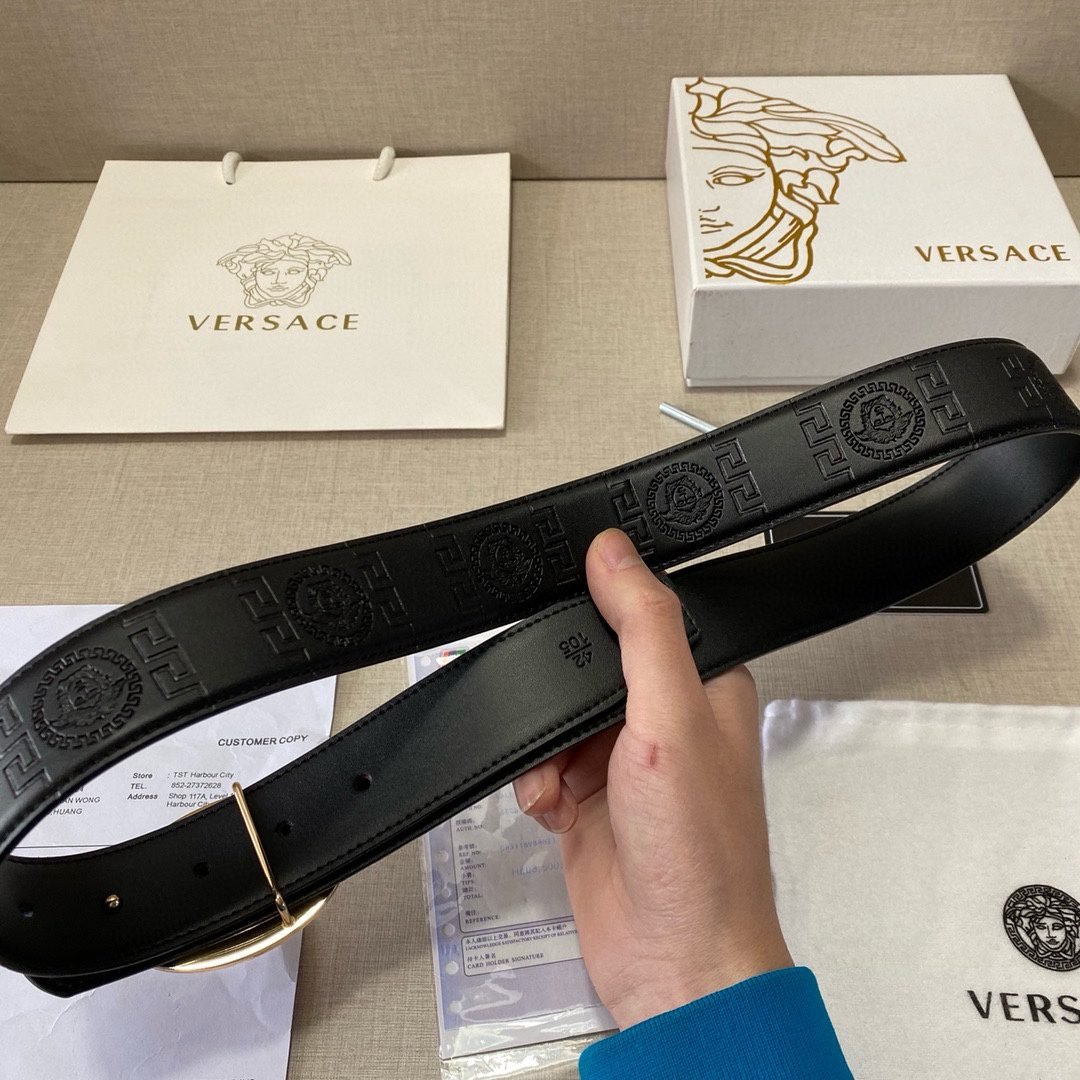 Home Belt VERSACE Belt Versace Circular Buckle Black Texture Belt Classic Fashion Noble Luxury