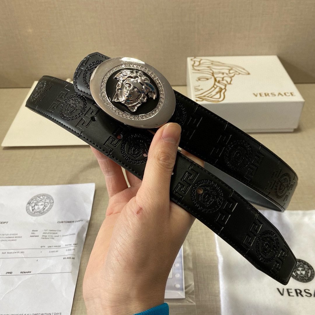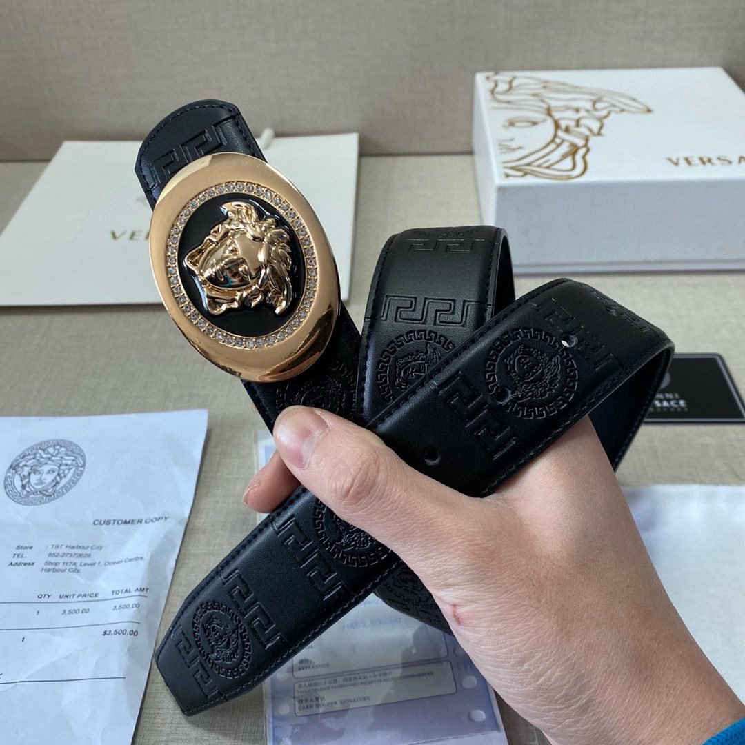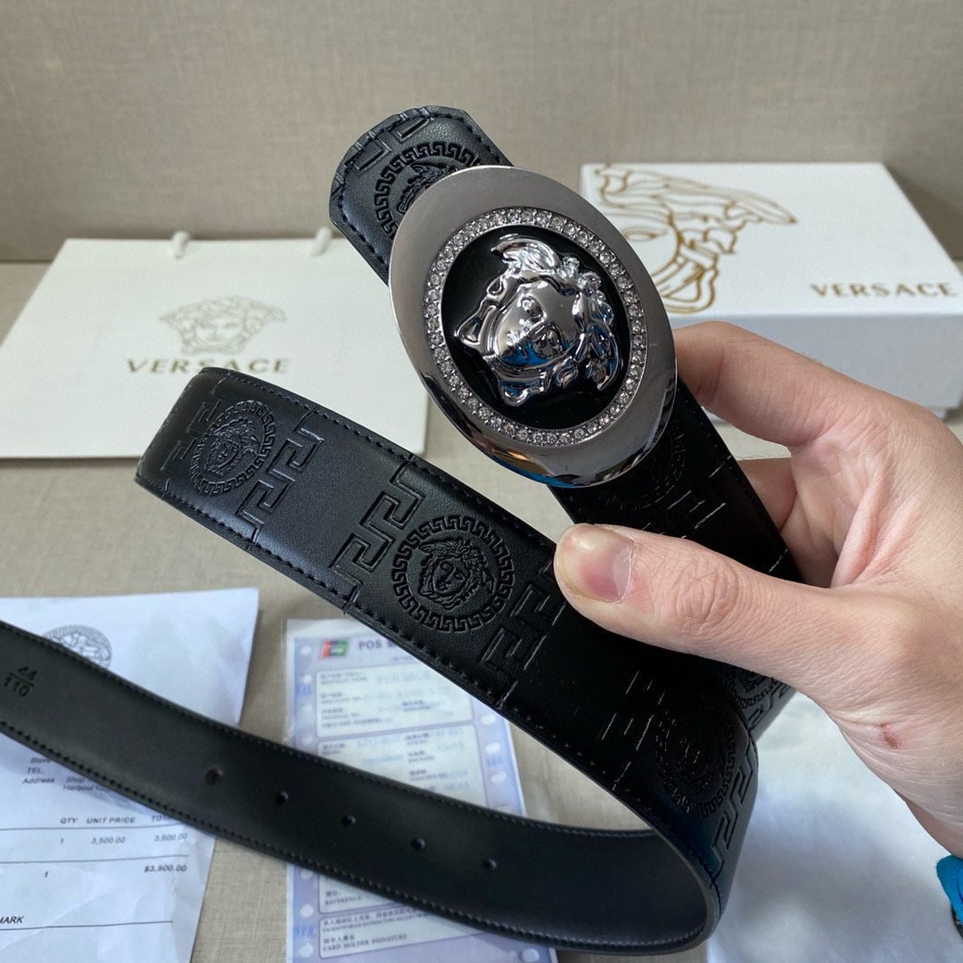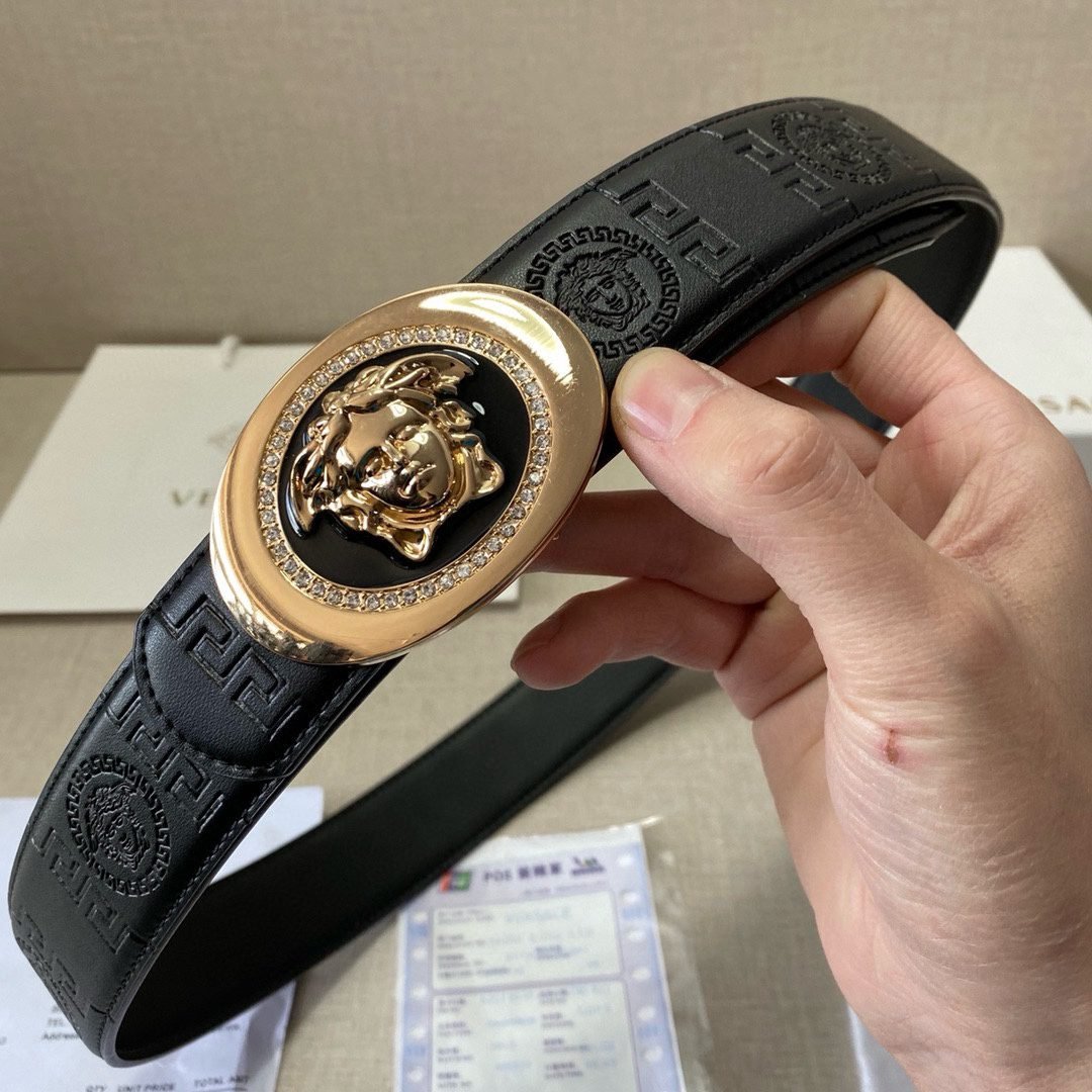 Home Belt VERSACE Belt Versace Circular Buckle Black Texture Belt Classic Fashion Noble Luxury