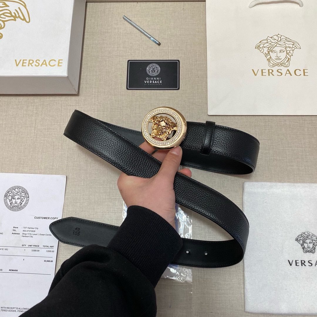 Home Belt VERSACE Belt Versace circular Medusa embossed buckle with black belt, simple and elegant, low-key and luxurious