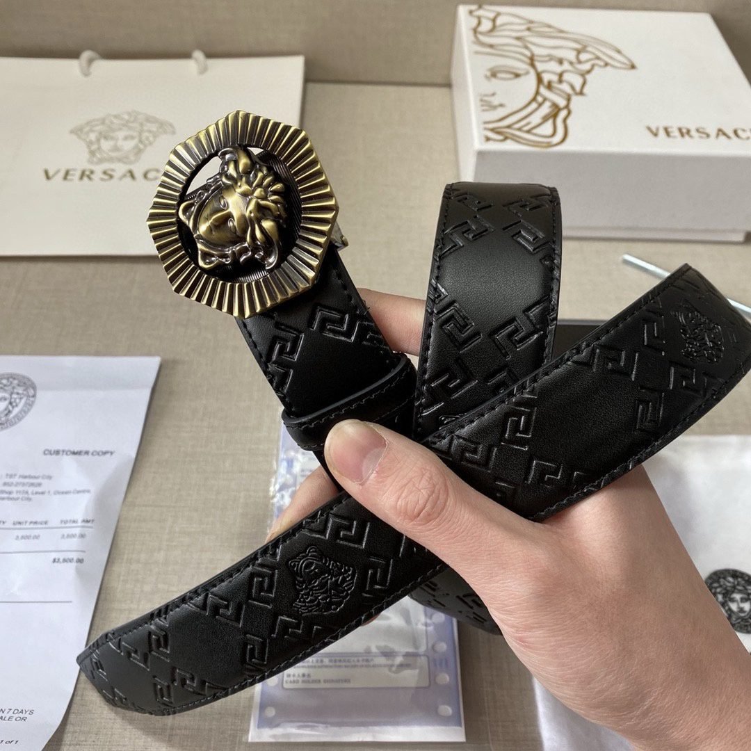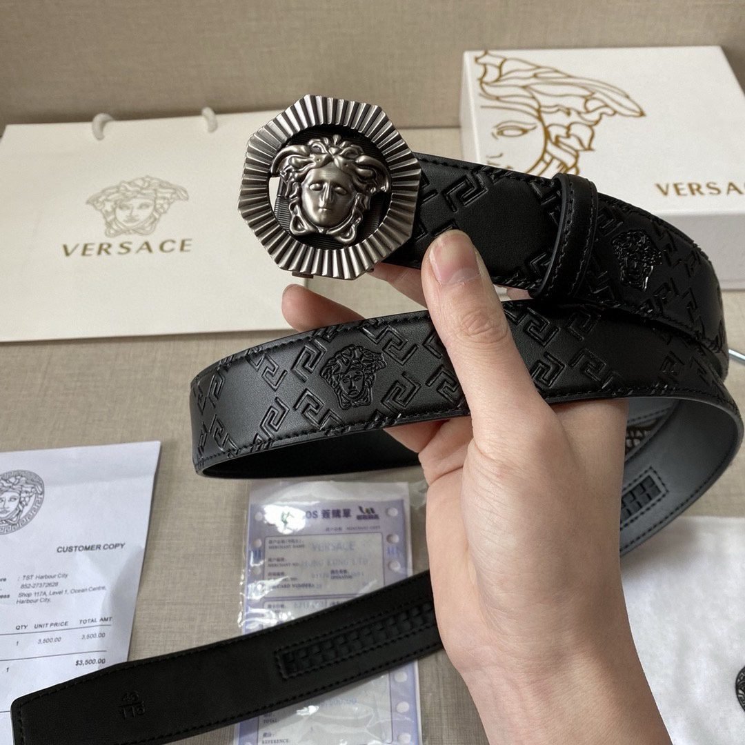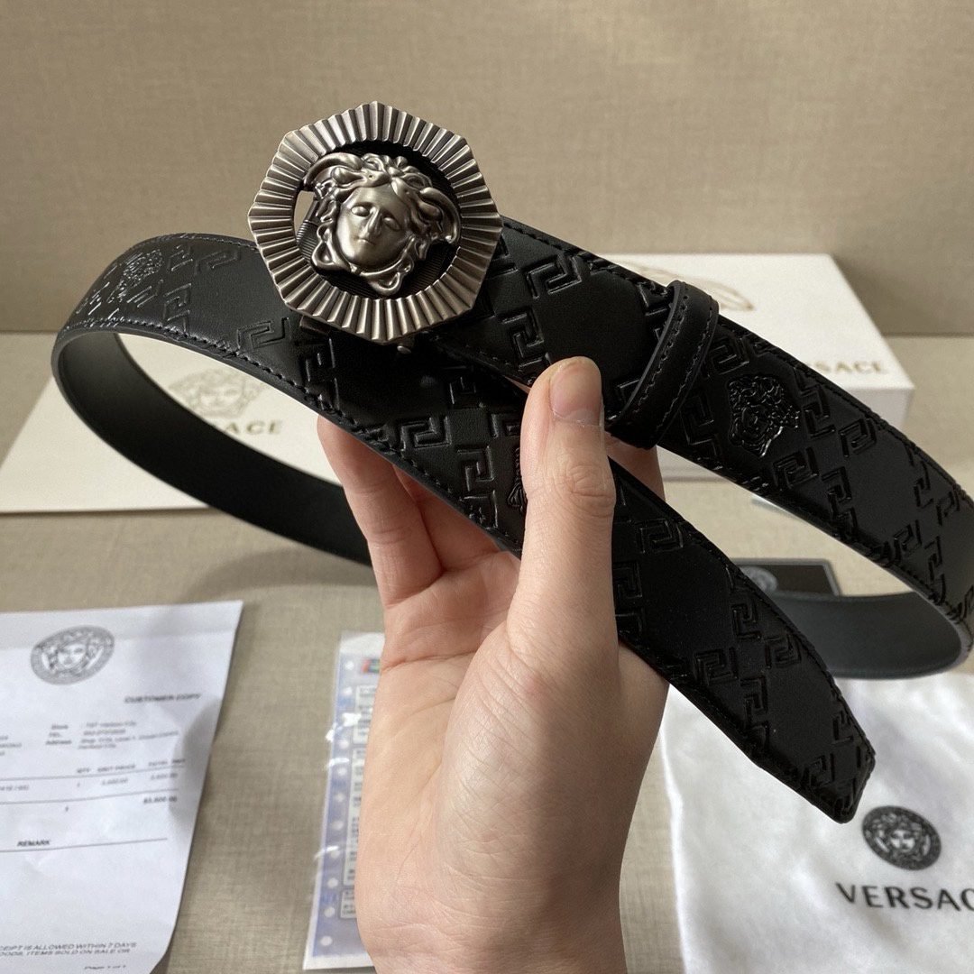 Versace classic Medusa embossed black textured belt, simple, atmospheric, low-key, luxurious $210.00 Original price was: $210.00.$66.69Current price is: $66.69.