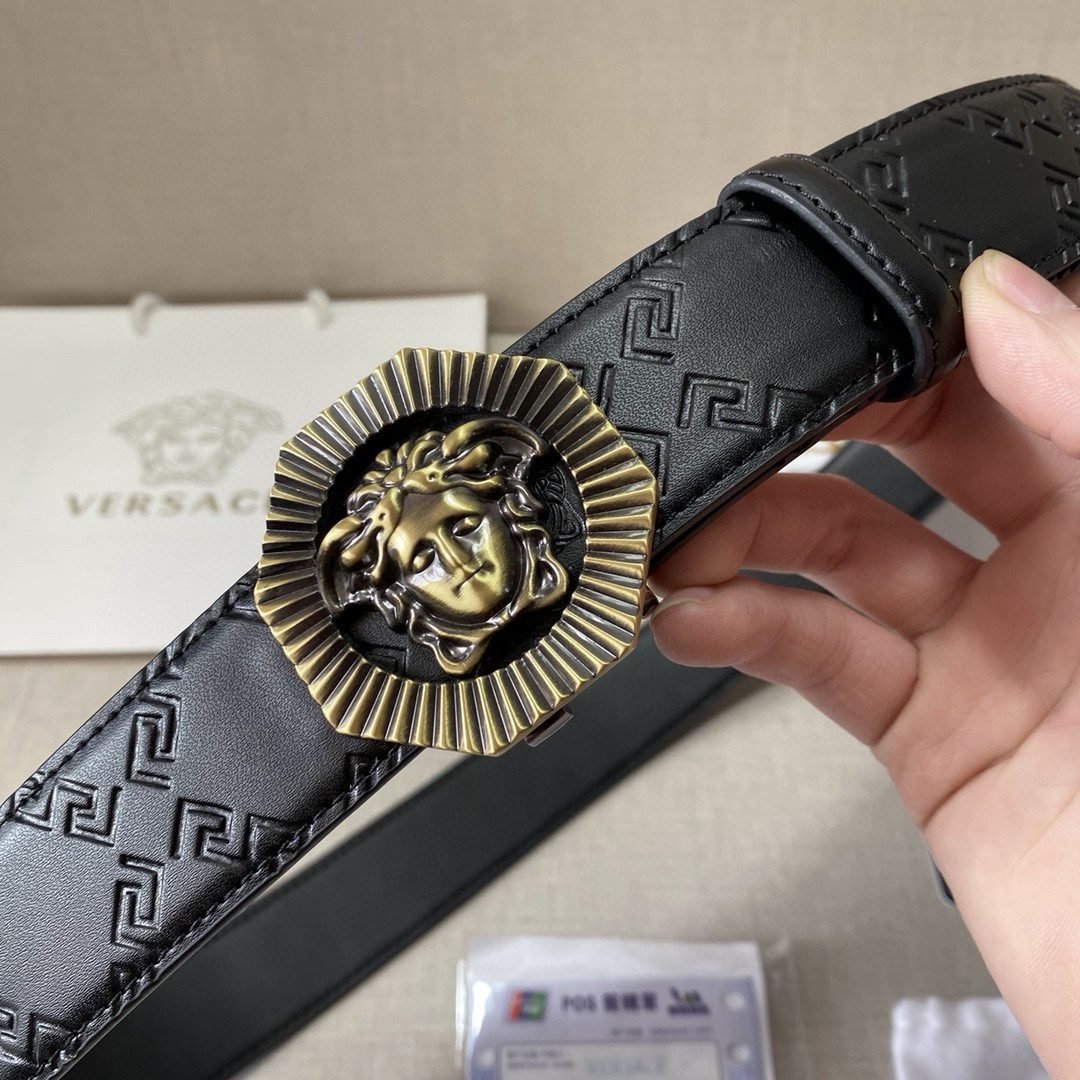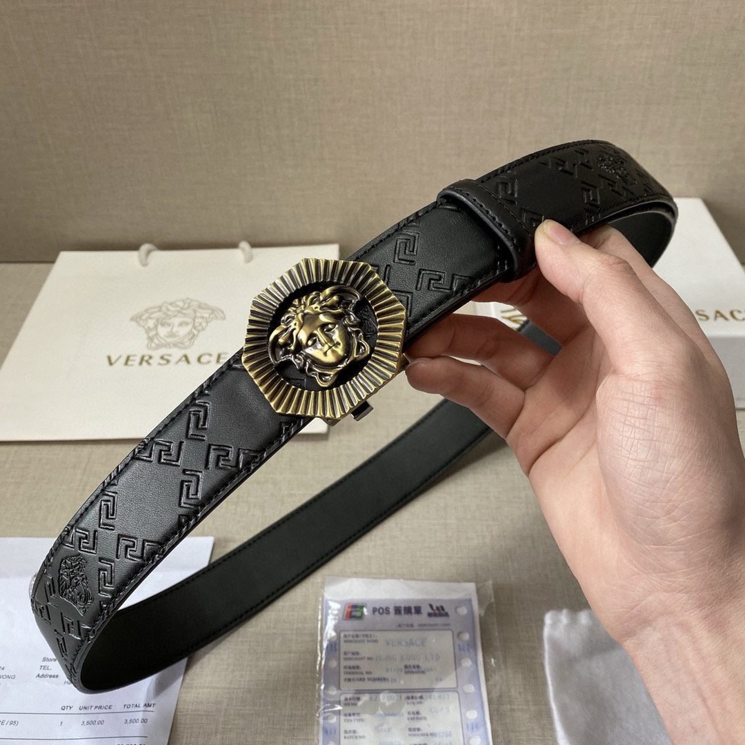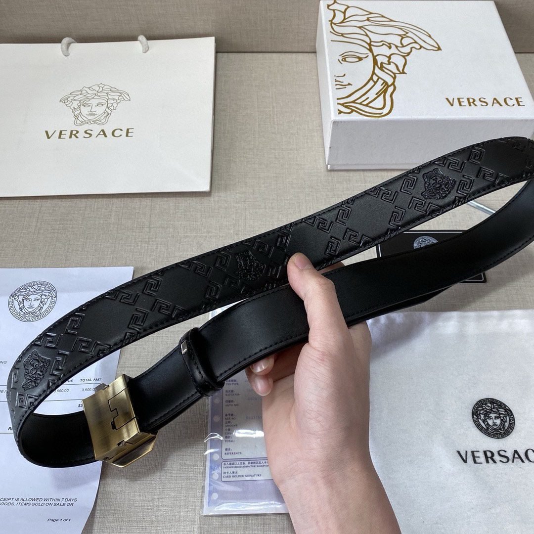 Versace classic Medusa embossed black textured belt, simple, atmospheric, low-key, luxurious $210.00 Original price was: $210.00.$66.69Current price is: $66.69.