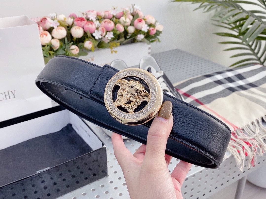 Home Belt VERSACE Belt Versace Classic Circular Buckle Black Belt Classic Fashion Noble and Elegant