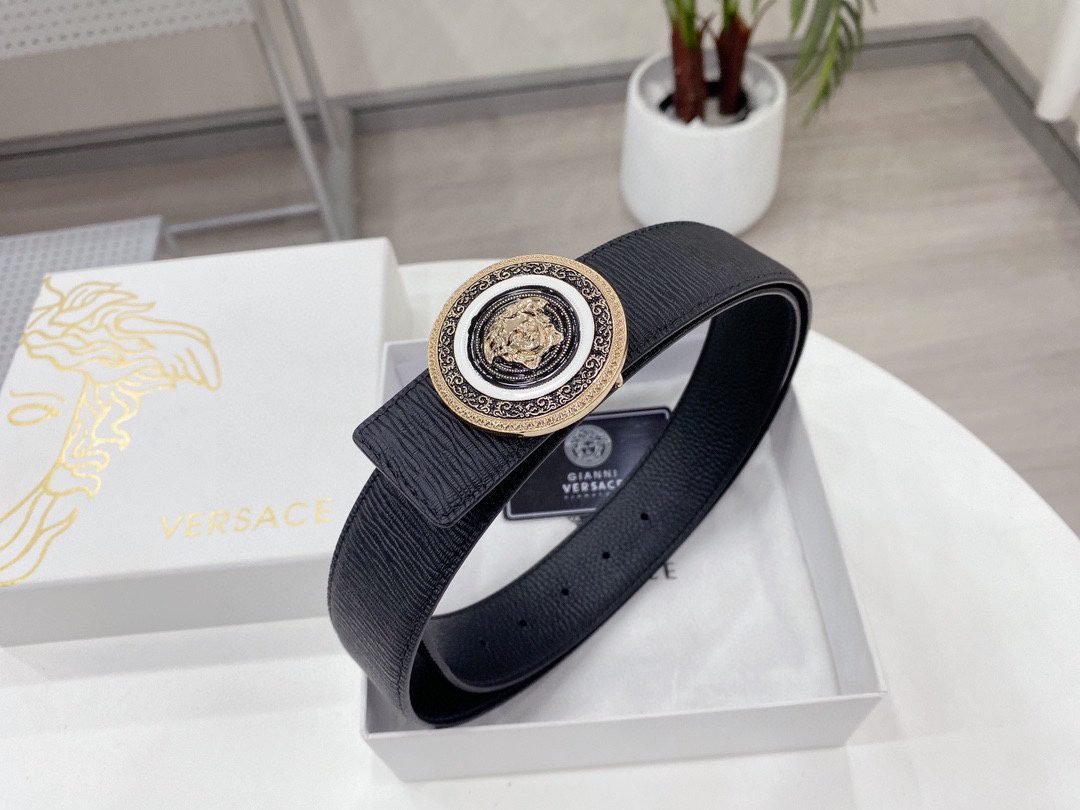Versace Classic Circular Buckle Black Belt Classic Fashion Noble and Elegant