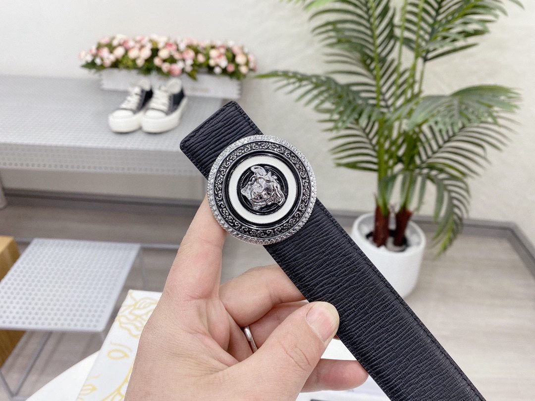 Home Belt VERSACE Belt Versace Classic Circular Buckle Black Belt Classic Fashion Noble and Elegant