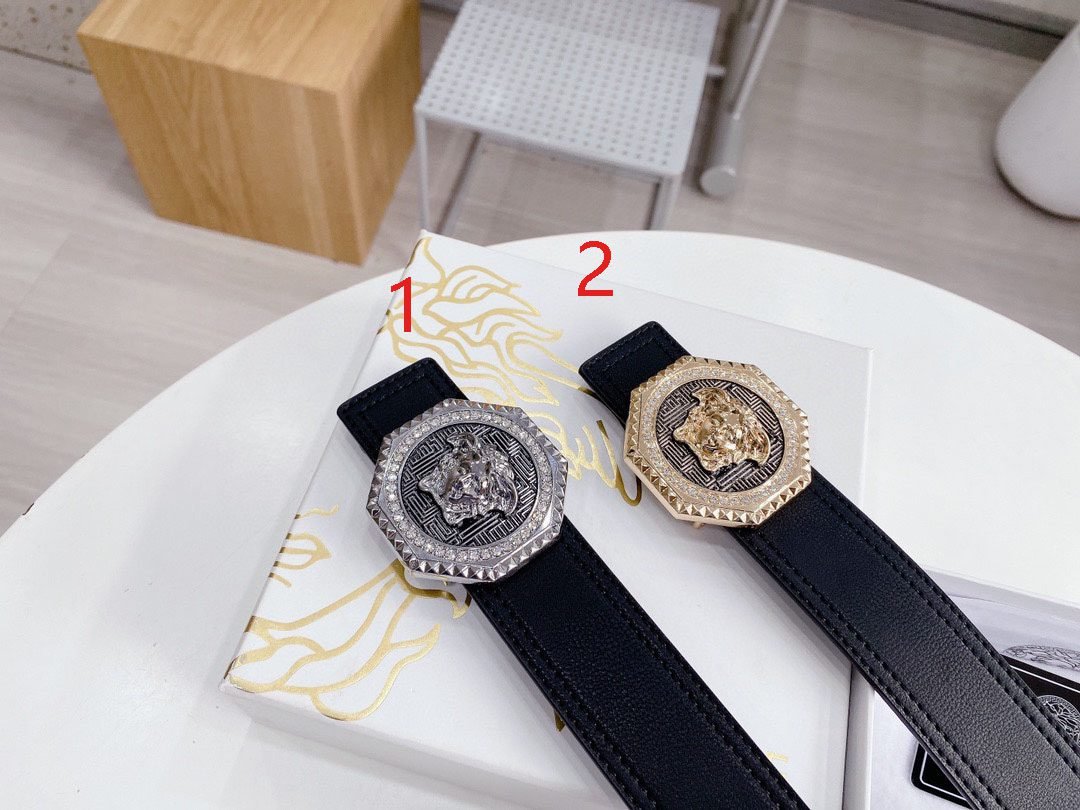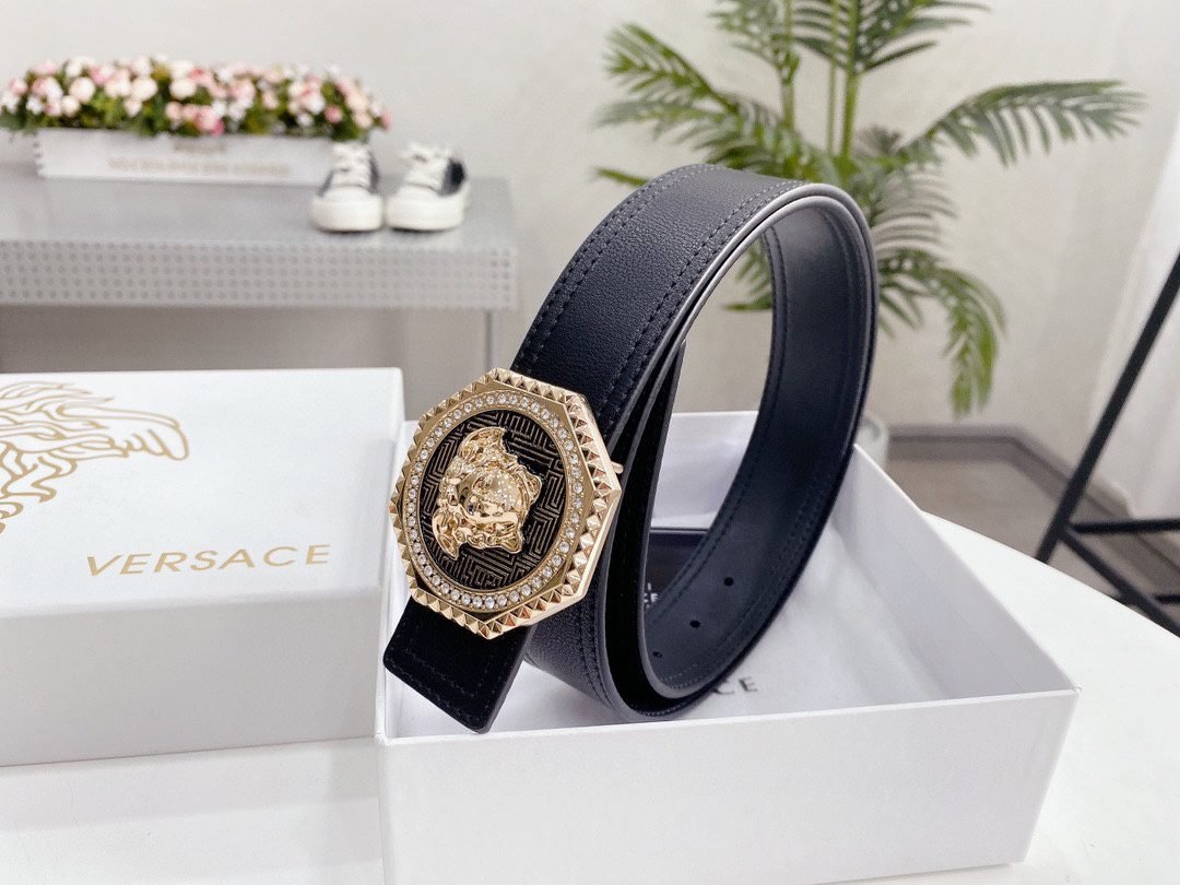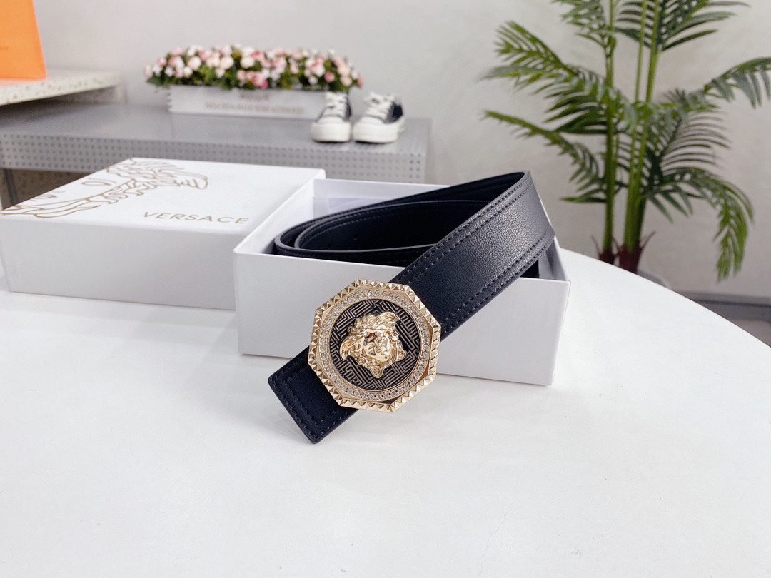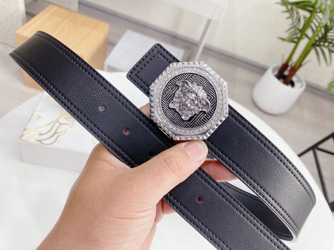 Home Belt VERSACE Belt Versace Classic Circular Buckle Black Belt Simple Fashion Noble Luxury