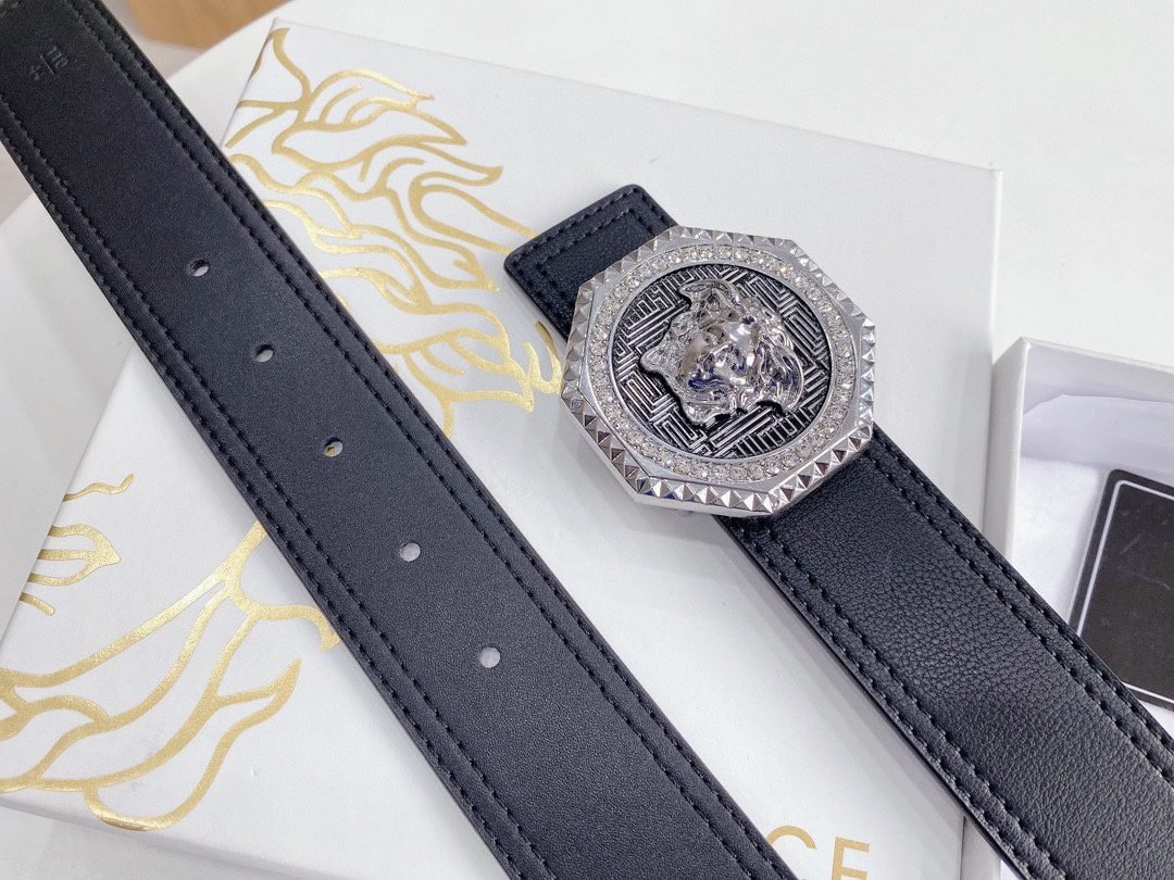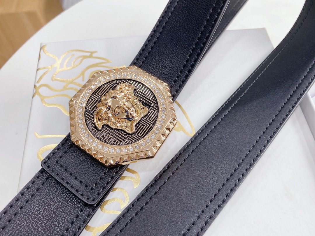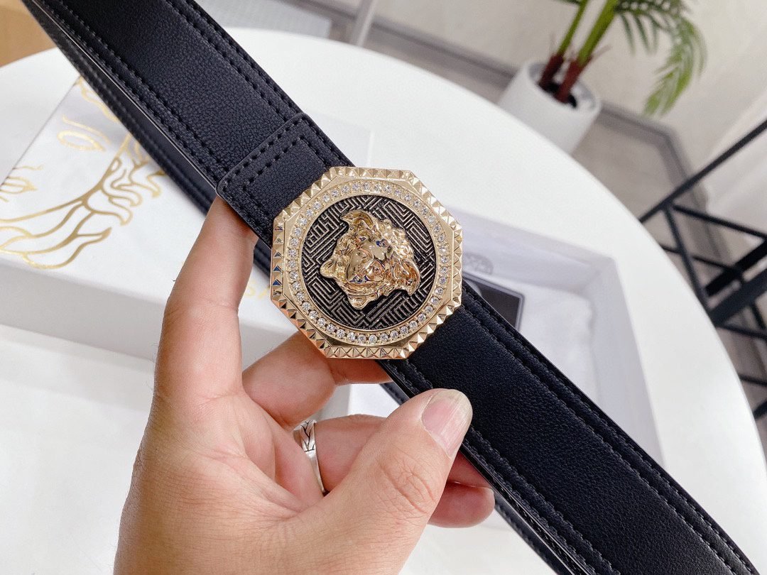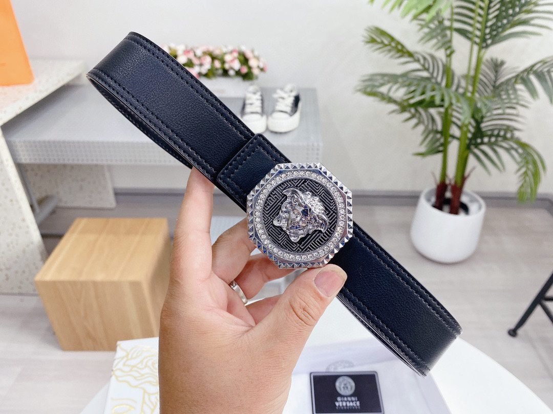 Versace Classic Circular Buckle Black Texture Belt Simple, Fashionable, Noble, Luxury