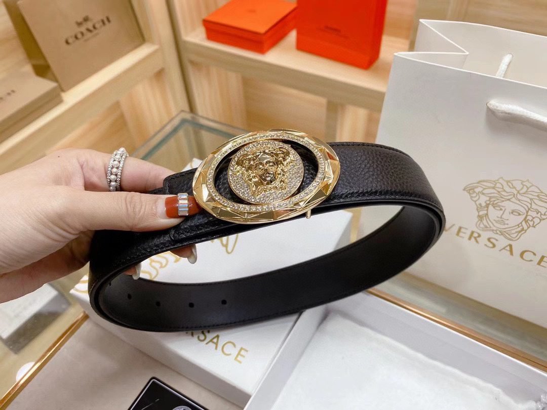 Home Belt VERSACE Belt Versace Classic Circular Buckle Black Belt Simple, Fashionable, Noble, and Elegant