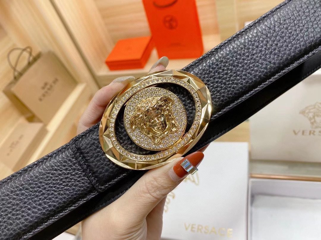 Versace Classic Medusa Buckle Black Texture Belt Simple, Fashionable, Noble, Elegant
