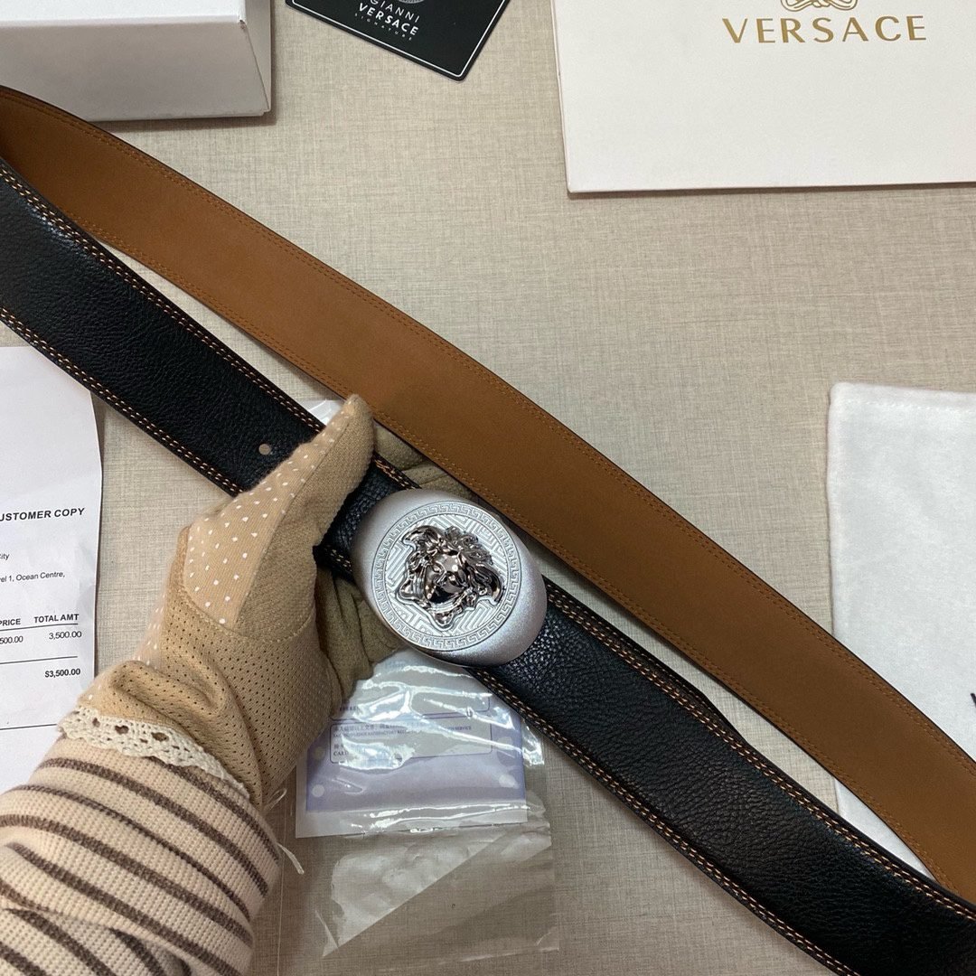 Home Belt VERSACE Belt Versace Classic Circular Buckle Black Belt Simple, Fashionable, Noble, and Elegant