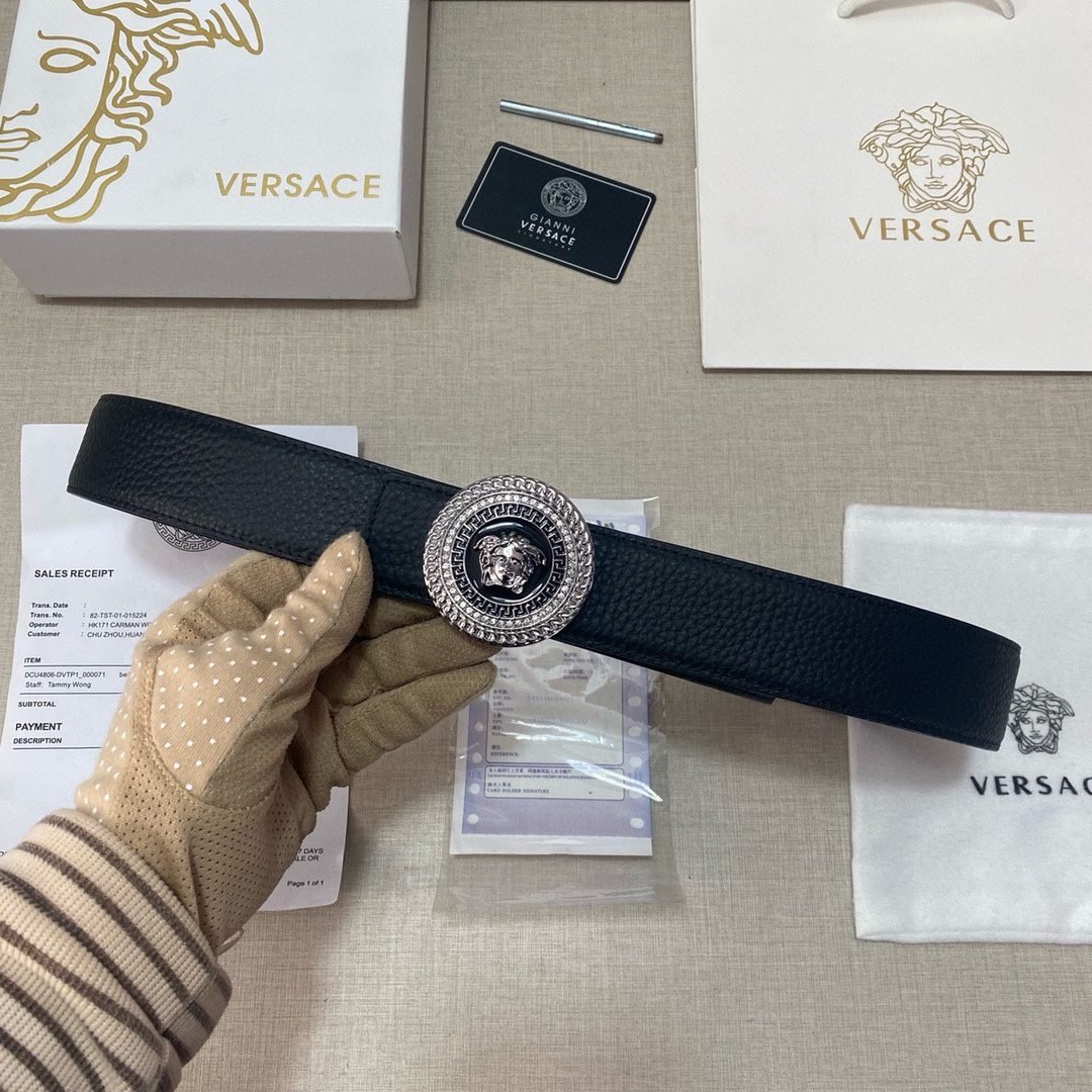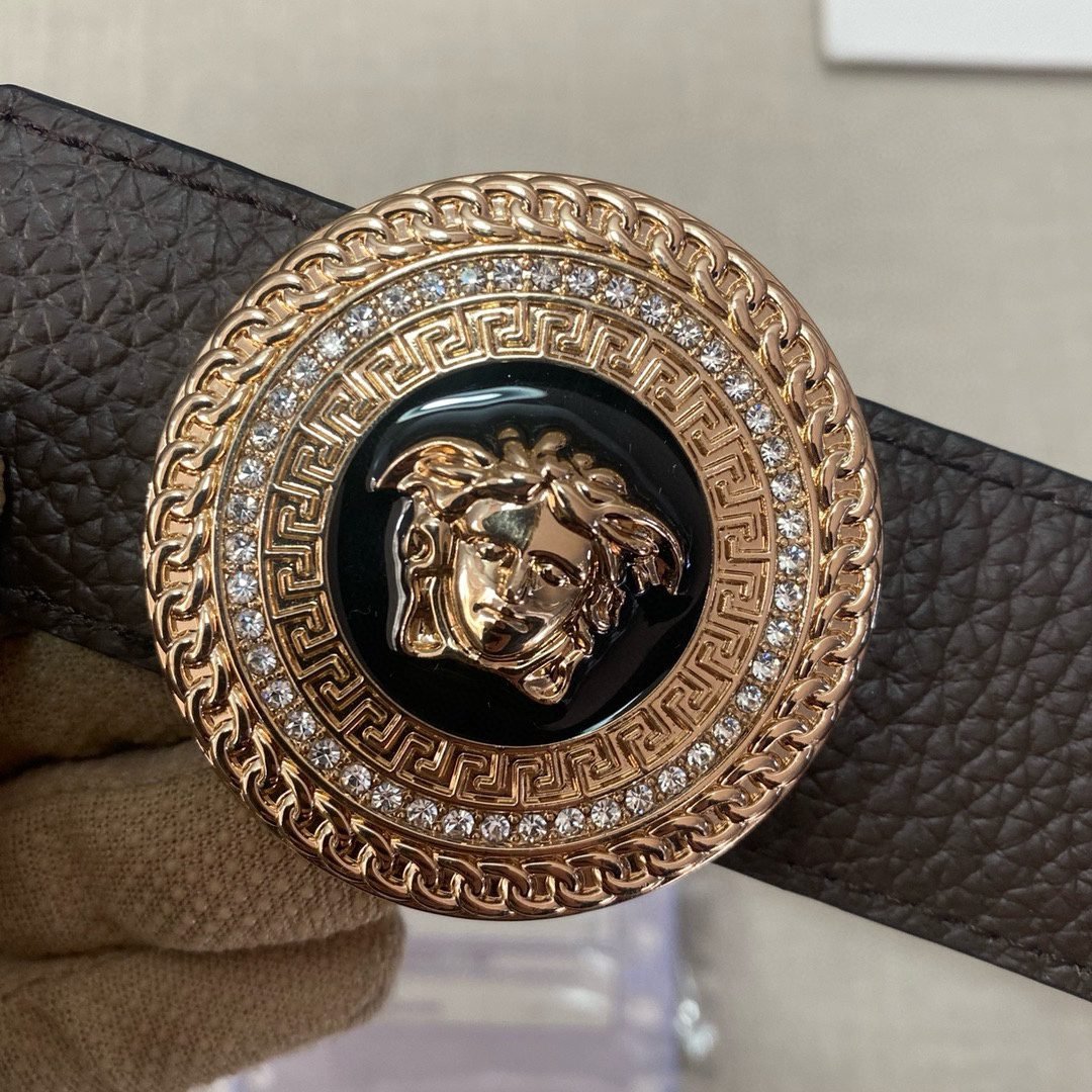 Versace Classic Circular Buckle Black Texture Belt Simple, Fashionable, Noble, and Elegant