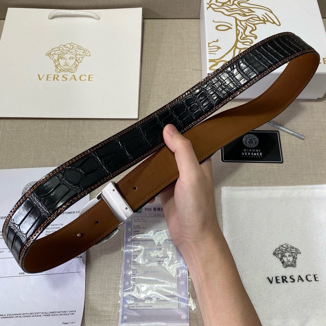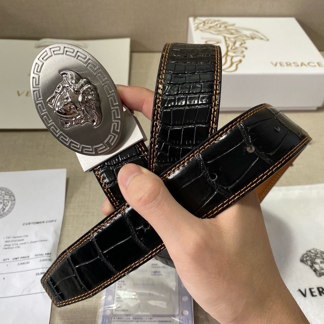 Versace Classic Circular Buckle Black Crocodile Pattern Belt Simple, Fashionable, Noble, Luxury