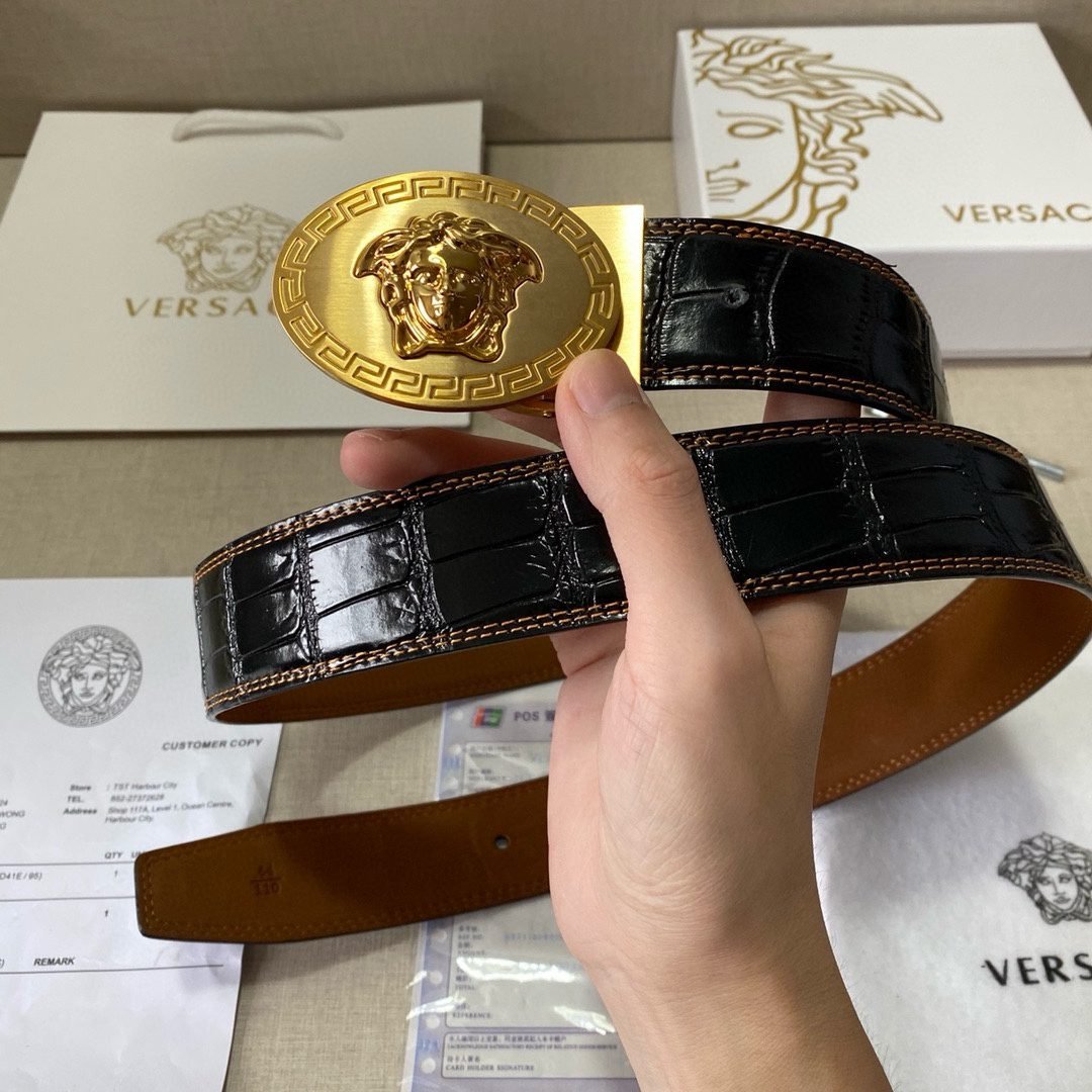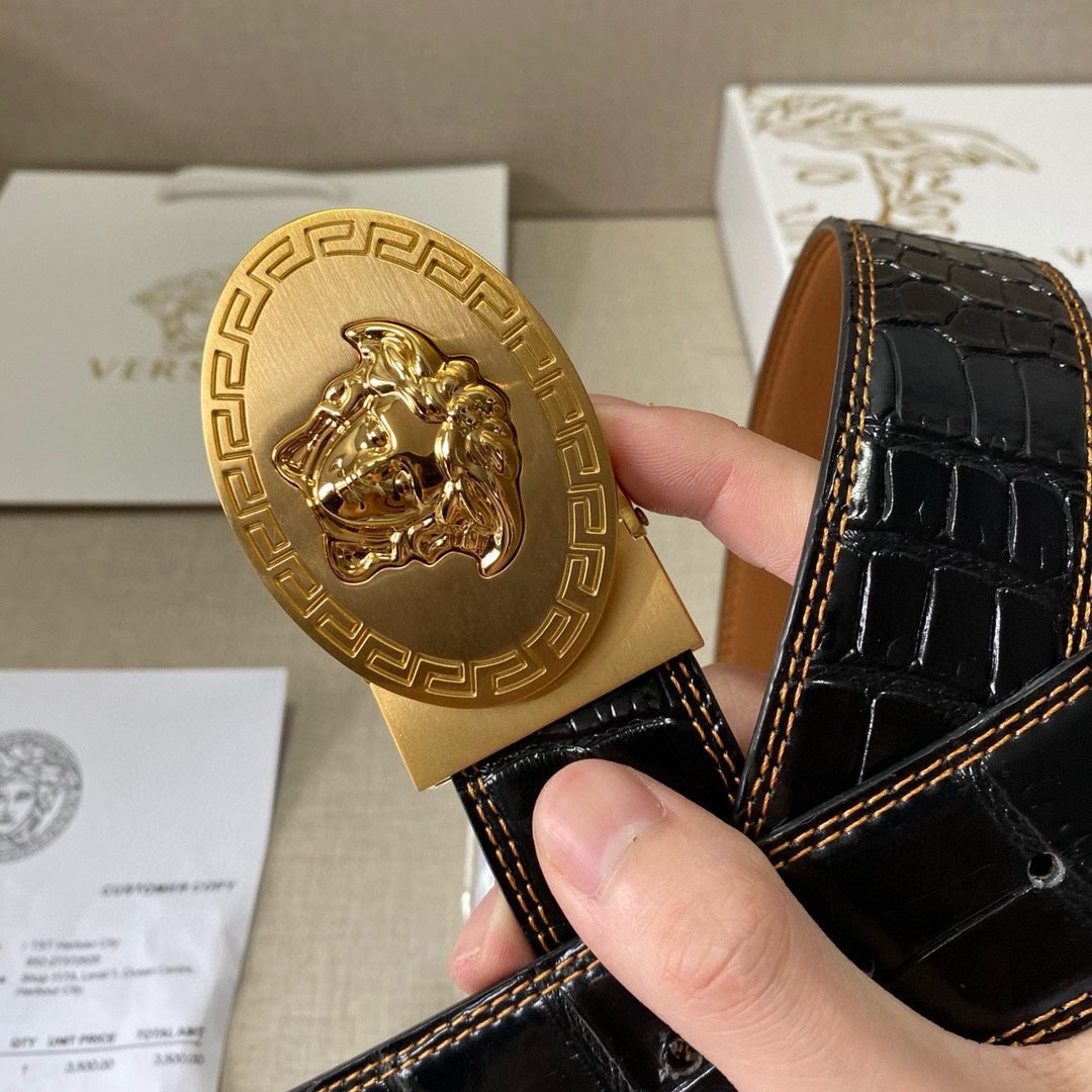 Home Belt VERSACE Belt Versace Classic Circular Buckle Black Crocodile Pattern Belt Simple, Fashionable, Noble, Luxury