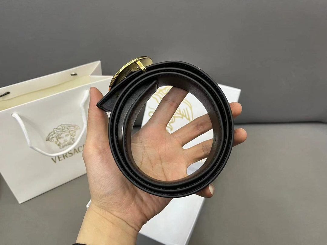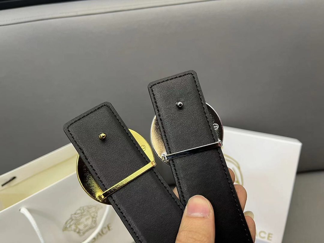 Versace Silver Circular Buckle Black Belt Simple, Elegant, Noble, Luxury