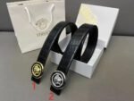 Versace Silver Circular Buckle Black Belt Simple, Elegant, Noble, Luxury