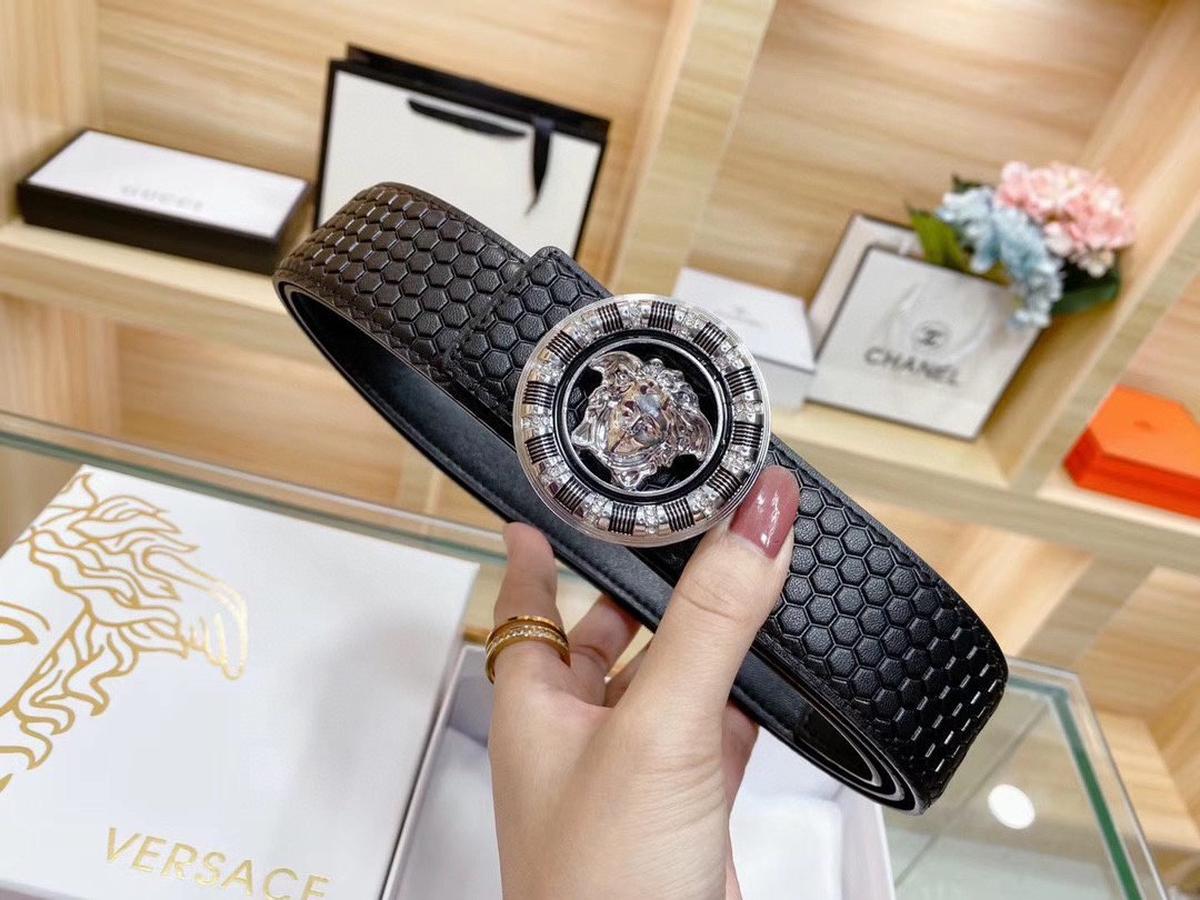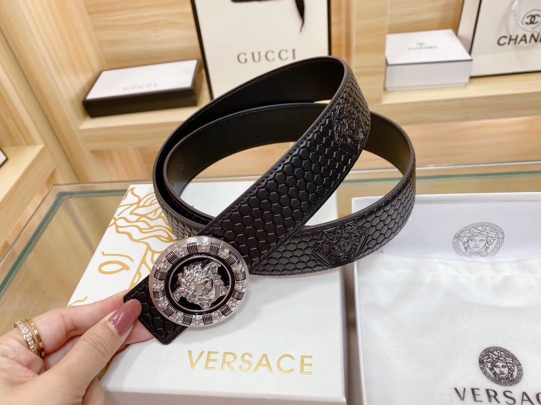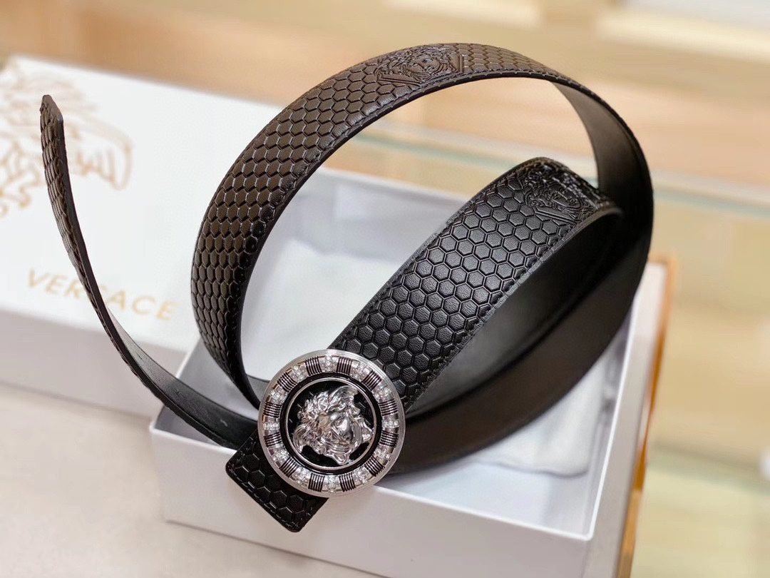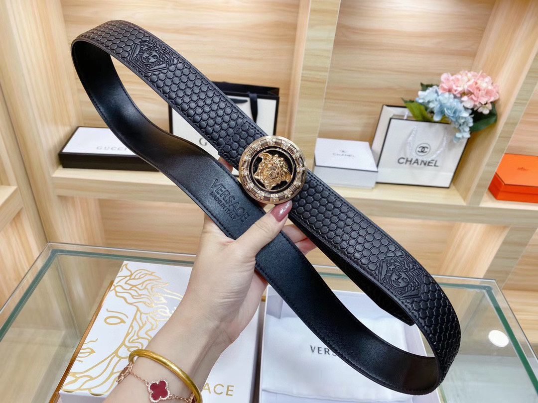 Versace Classic Medusa Relief Ring Buckle Black Texture Belt Classic Fashion Exquisite Elegance
