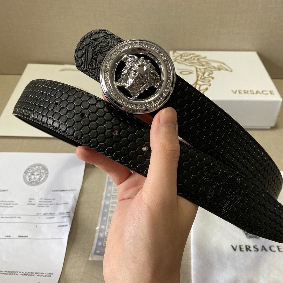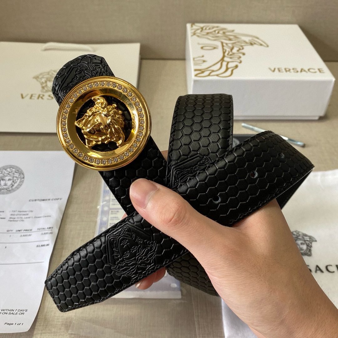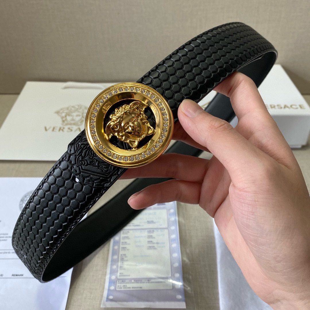Home Belt VERSACE Belt Versace Classic Circular Buckle Black Plaid Belt Simple Fashion Noble Luxury