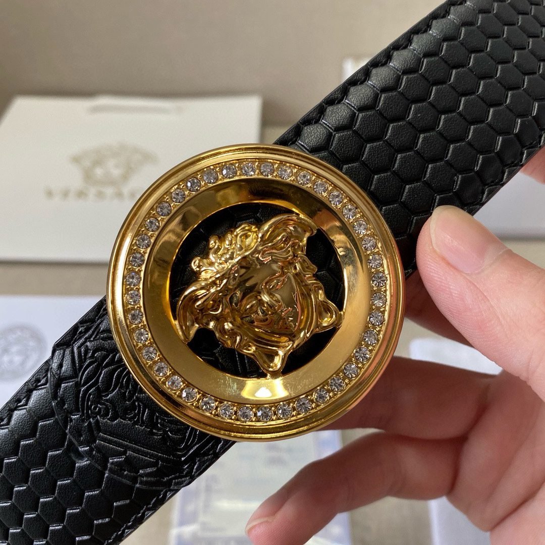 Versace Classic Circular Buckle Black Texture Belt Simple, Fashionable, Noble, Luxury
