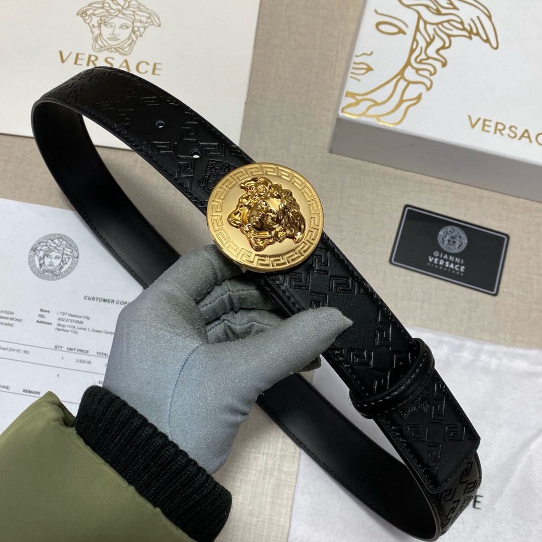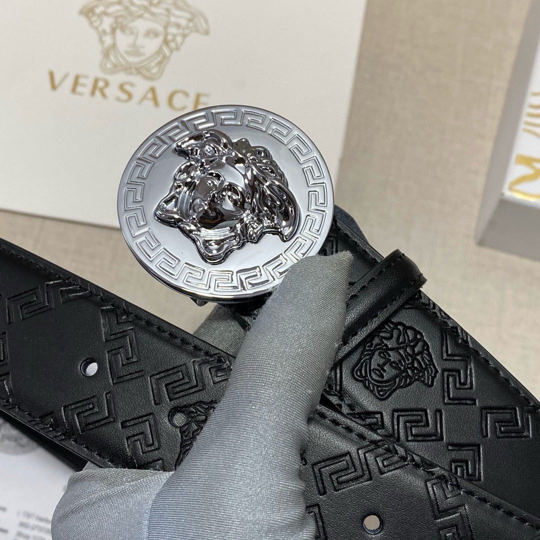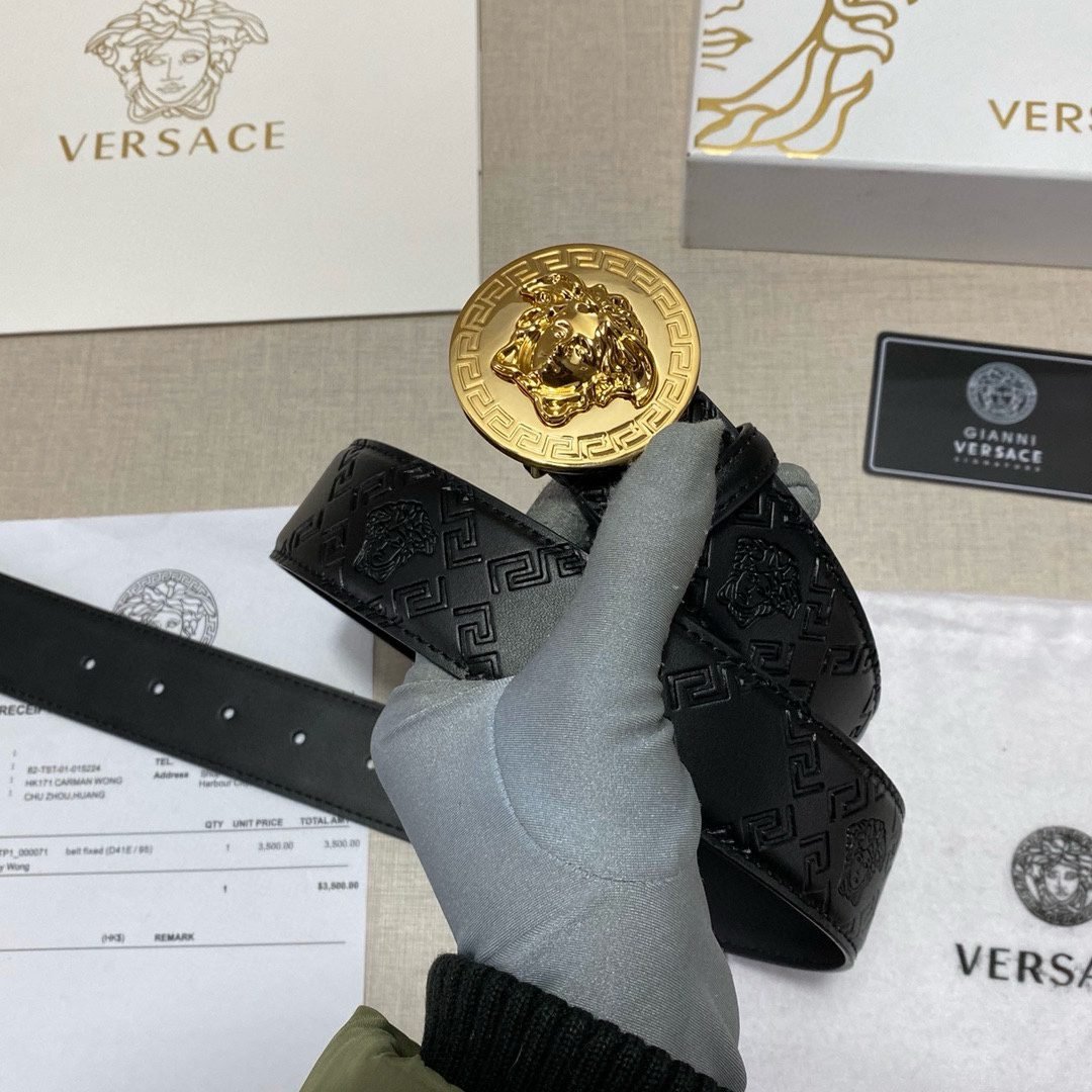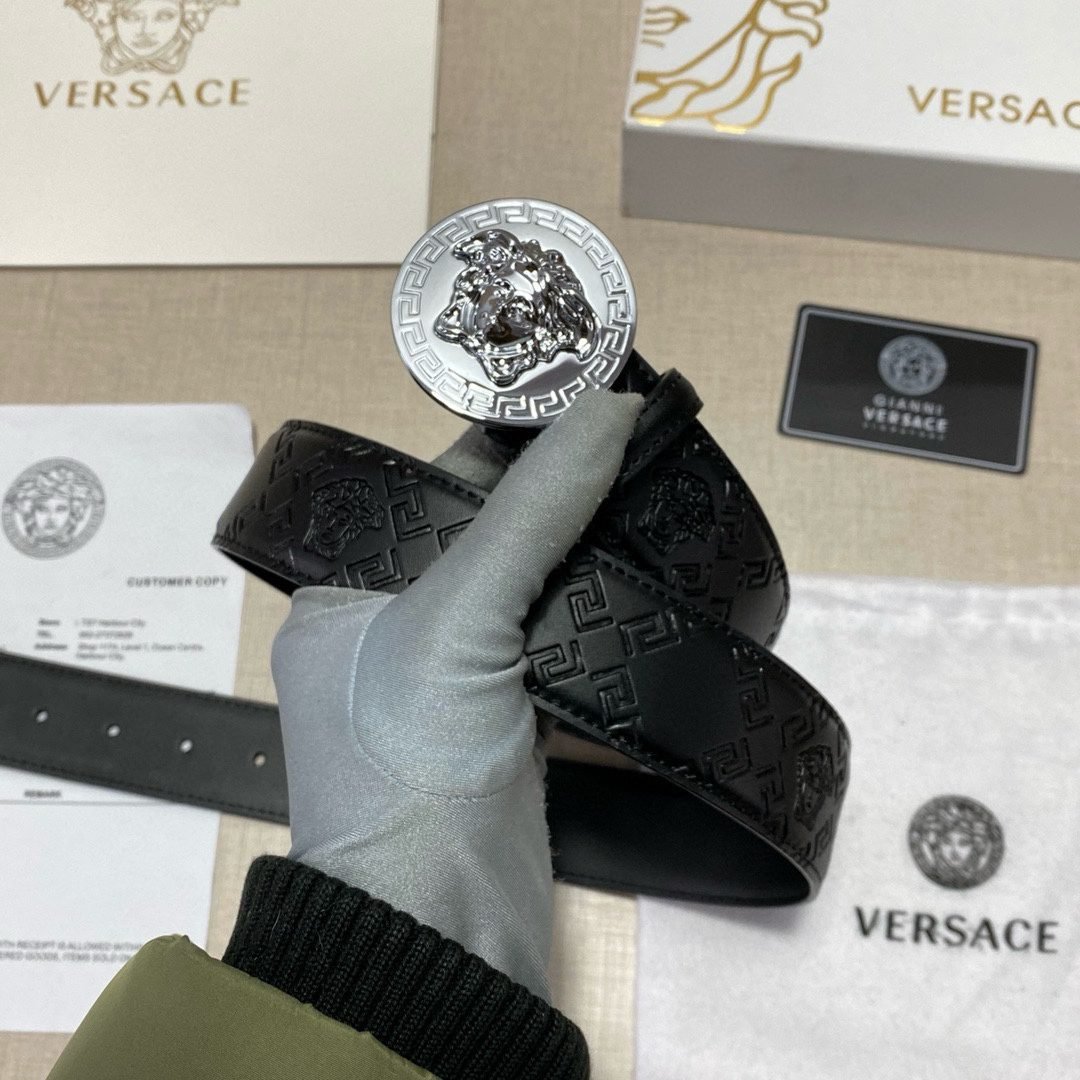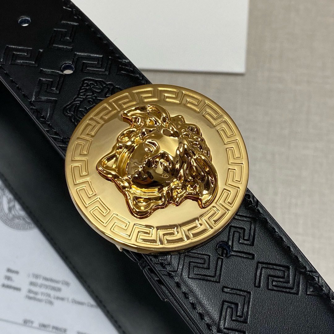 Home Belt VERSACE Belt Versace Classic Circular Buckle Black Texture Belt Classic Fashion Noble Luxury