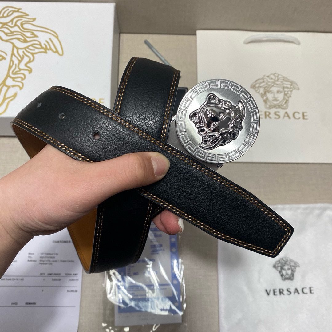 Versace Classic Circular Buckle Black Texture Belt Simple and Elegant Classic Fashion